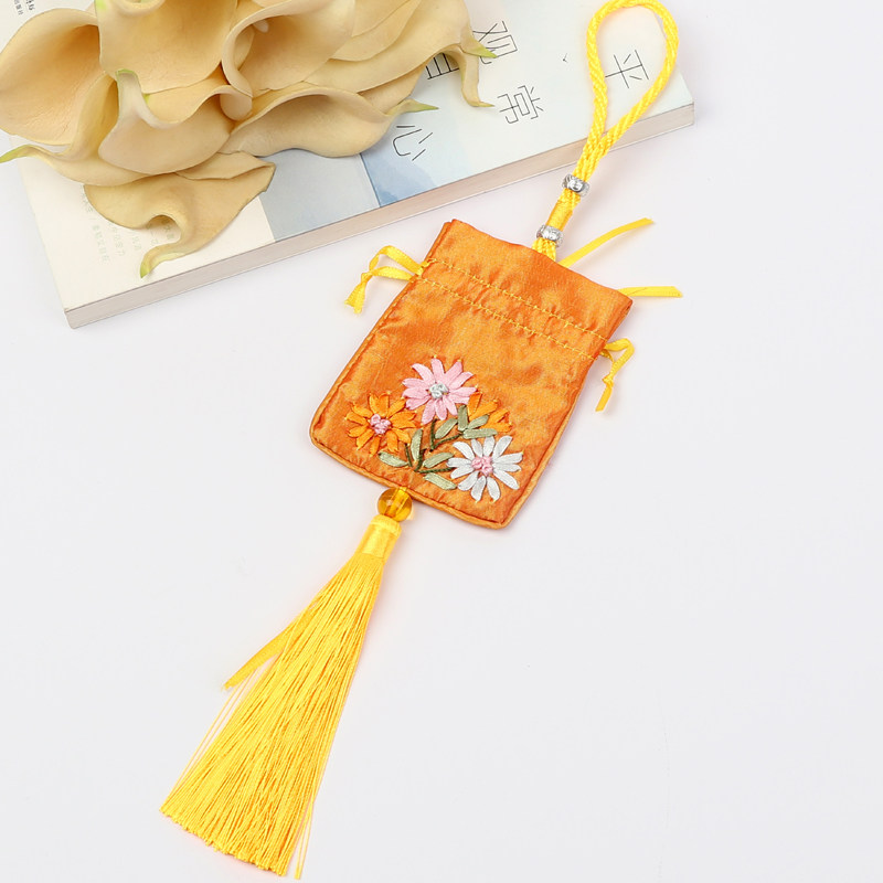 - Ленточный вышитый саше -желтый (пустая сумка)
