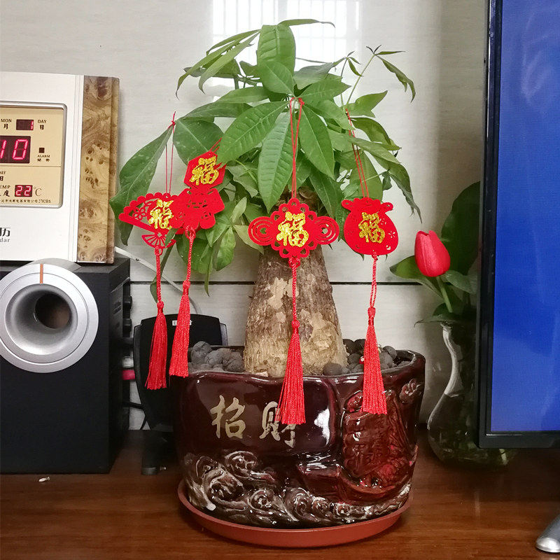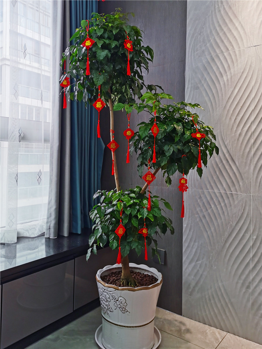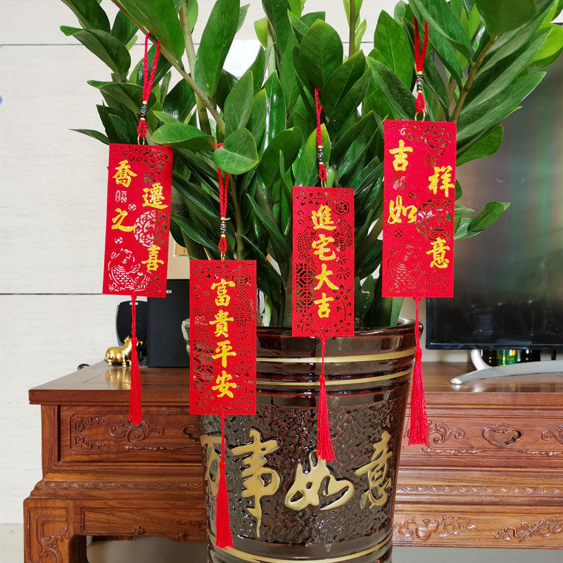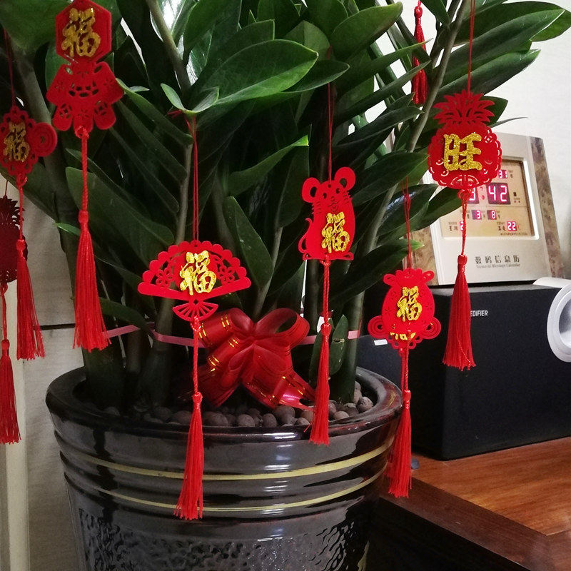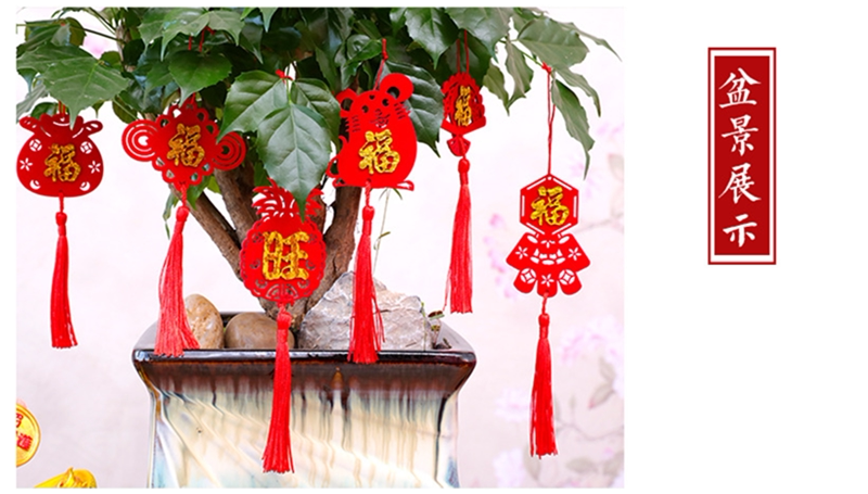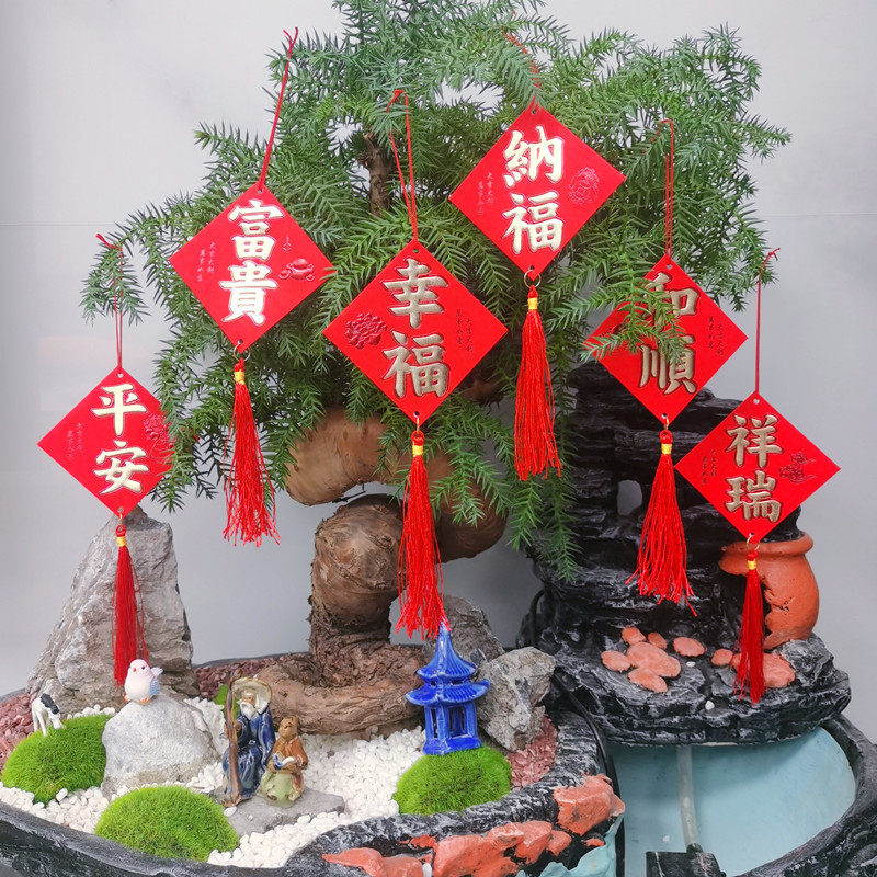 Клетчатая религиовая новая резиденция, чтобы предоставить богатое дерево зеленое растение бонсай, висящее украшение, имплантированные бархатные благословения фонари, китайский узло