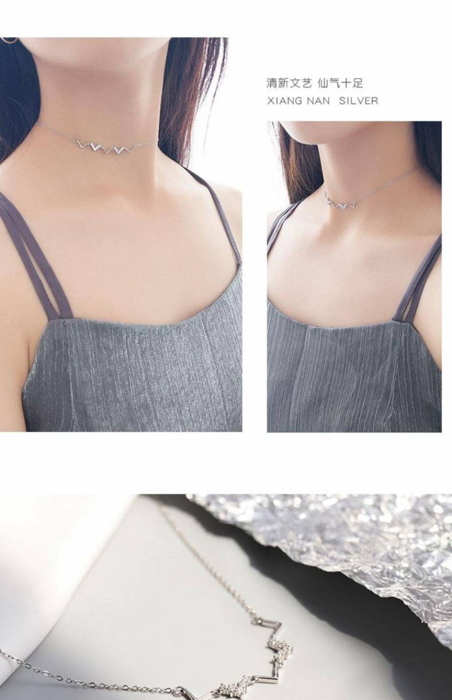 TikTok, ожерелье, цепочка до ключиц, аксессуар, серебро 925 пробы, в корейском стиле, простой и элегантный дизайн, популярно в интернете, подарок на день рождения