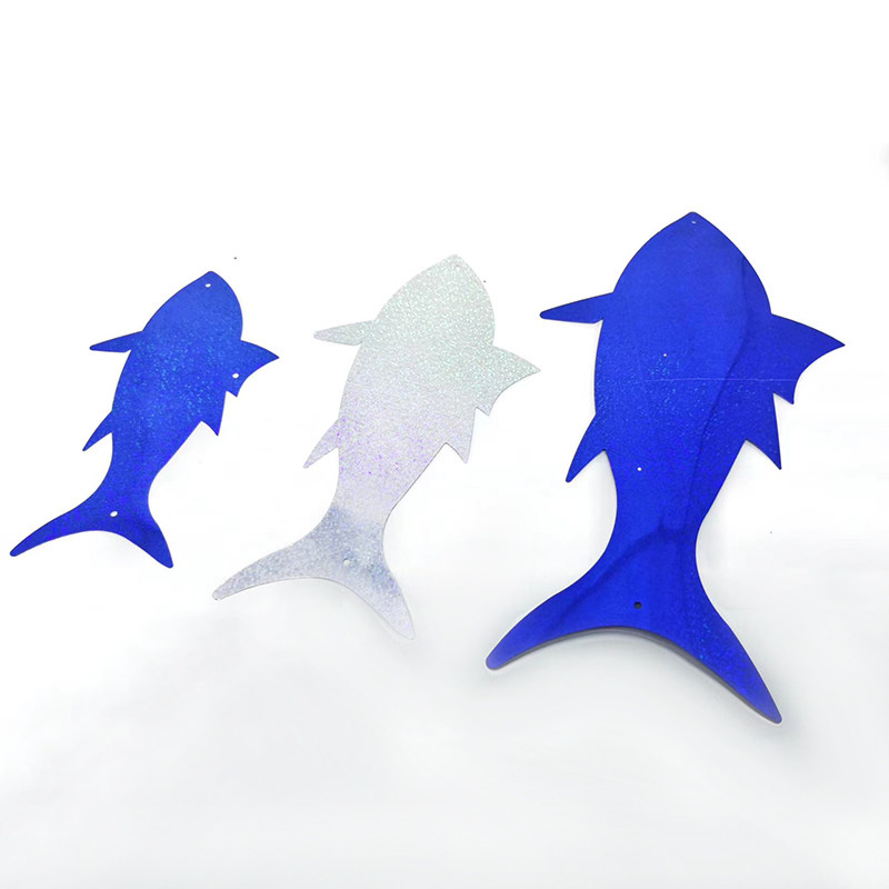 Креативный реквизит: подвесные детали в виде лазерных рыбок, блестящие подвески из ПВХ, украшение потолка, витрины на тему океана.