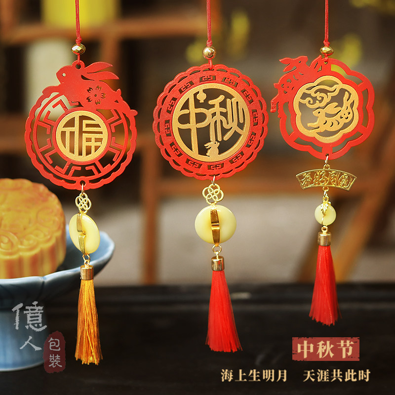 - Середина осени фестиваль в дятеле подвесной кулон-среднеугольный кролик [Джейд покрыта]
