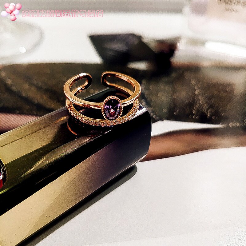 Универсальное безразмерное кольцо с аметистом с цирконом, японские и корейские, на указательный палец, популярно в интернете, микроинкрустация