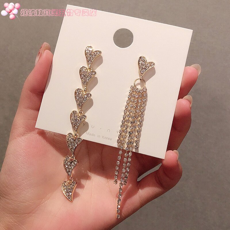 Серьги в виде сердечка, инкрустировано бриллиантами, европейский стиль