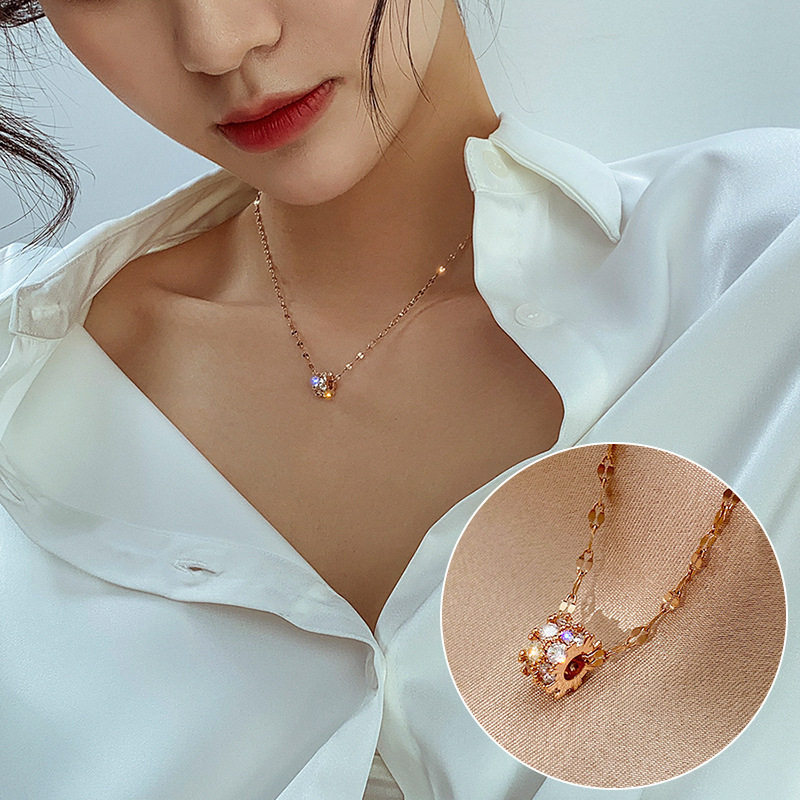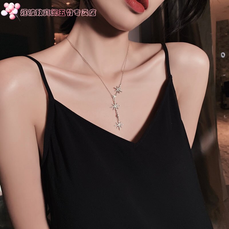 Цепочка до ключиц, регулируемое ожерелье, европейский стиль, инкрустировано бриллиантами, в корейском стиле