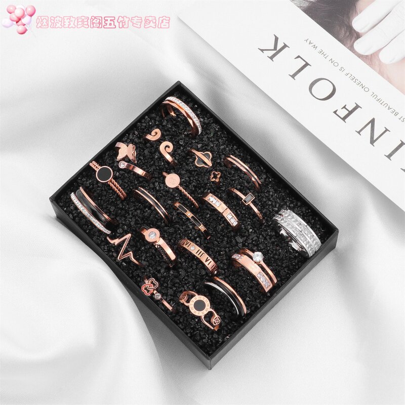 Золотое кольцо из нержавеющей стали с цирконом, трендовое модное универсальное ювелирное украшение, японские и корейские, розовое золото