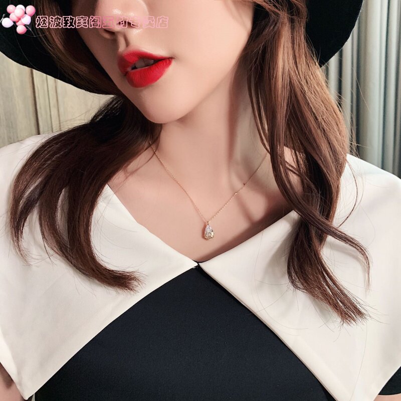 Ожерелье, универсальная цепочка до ключиц в форме капли, изысканный стиль, французский стиль, простой и элегантный дизайн, яркий броский стиль, микроинкрустация