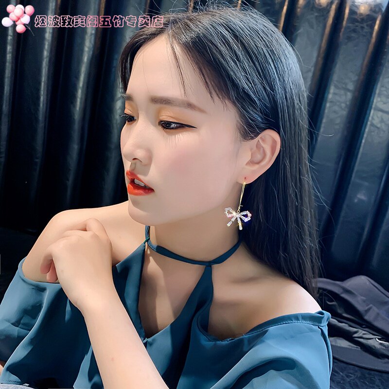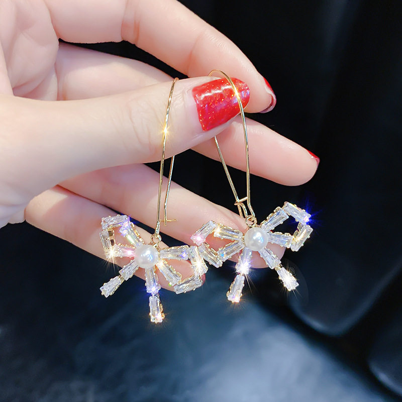 Серьги с бантиком с цирконом, южнокорейский милый креативный товар, аксессуар
