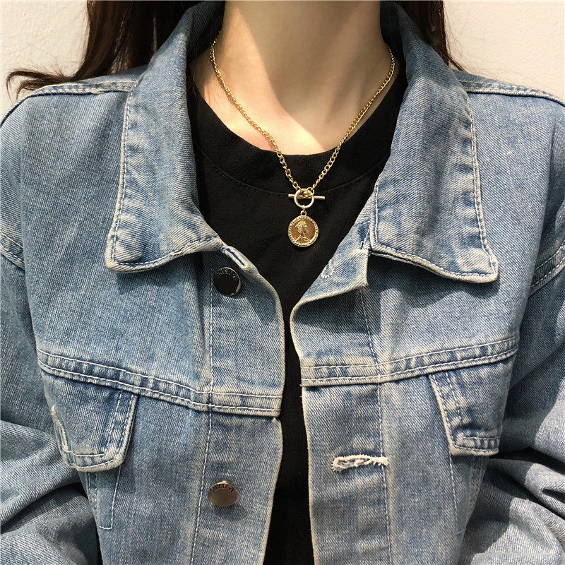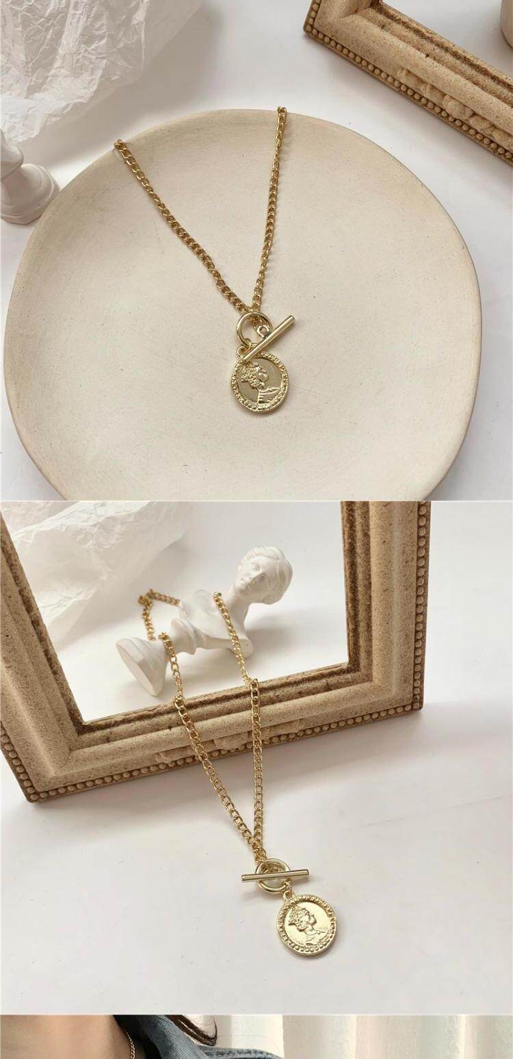 Небольшая дизайнерская цепочка до ключиц, монеты, подвеска, ожерелье, европейский стиль, в корейском стиле