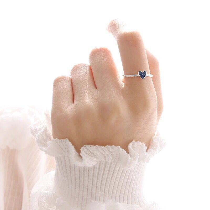 Изысканное синее звездное небо, милое безразмерное кольцо в форме сердца, серебро 925 пробы, подарок на день рождения