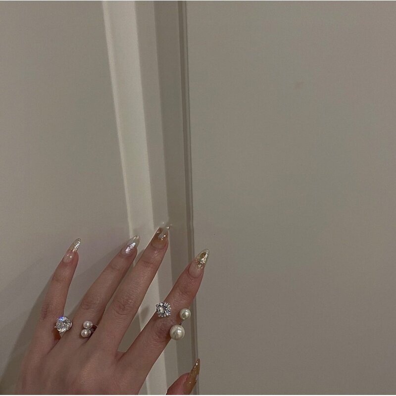 Блестящее универсальное кольцо из жемчуга с цирконом, модное ювелирное украшение, аксессуар, на указательный палец, популярно в интернете