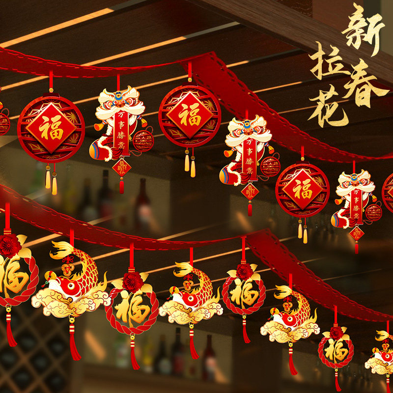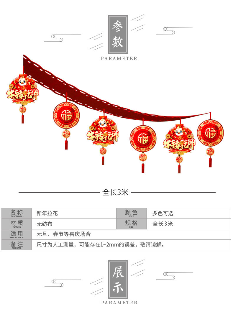 Весенний фестиваль Латте Арт-украшение торгового центра Новогодний праздник Праздничная композиция Принадлежности Мультфильм Благословение Подвеска с флагом 2021 Год Быка