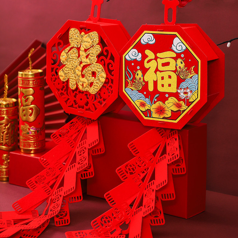 Новогоднее украшение 2021 года, новогодние украшения, Год Быка, внутреннее оформление Весеннего фестиваля, покупка новогодних товаров, трехмерные красные украшения с благословением