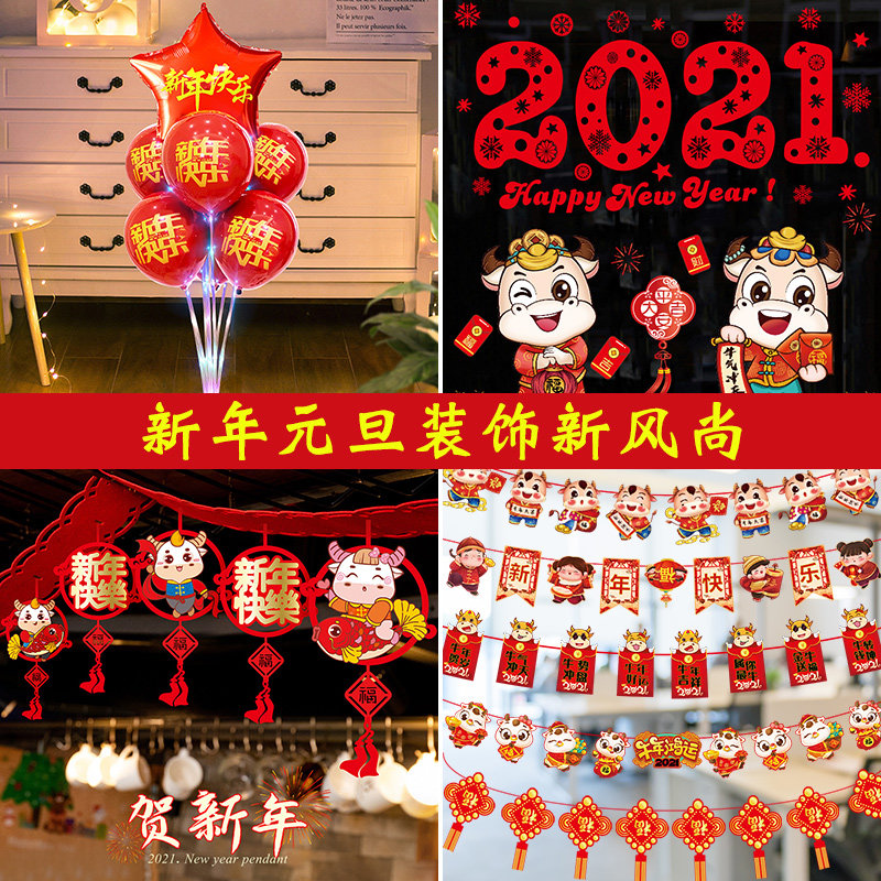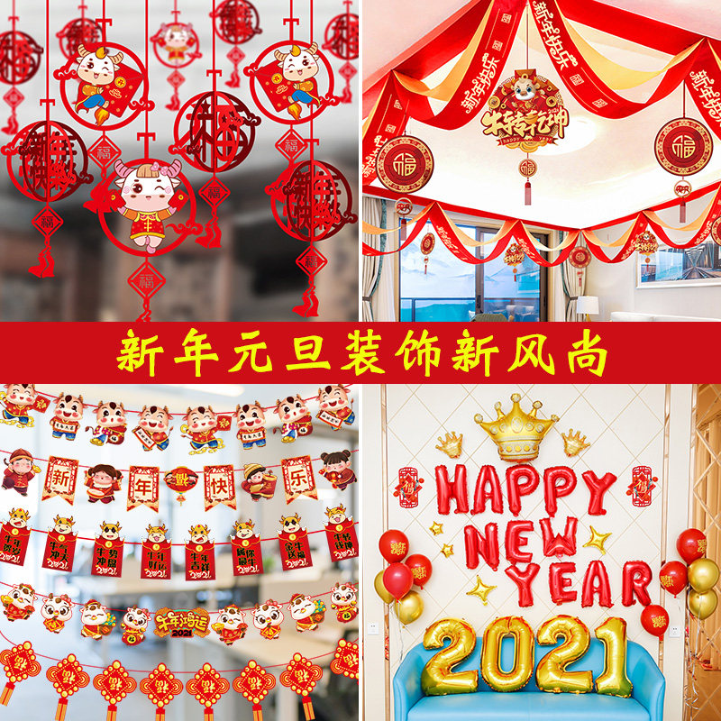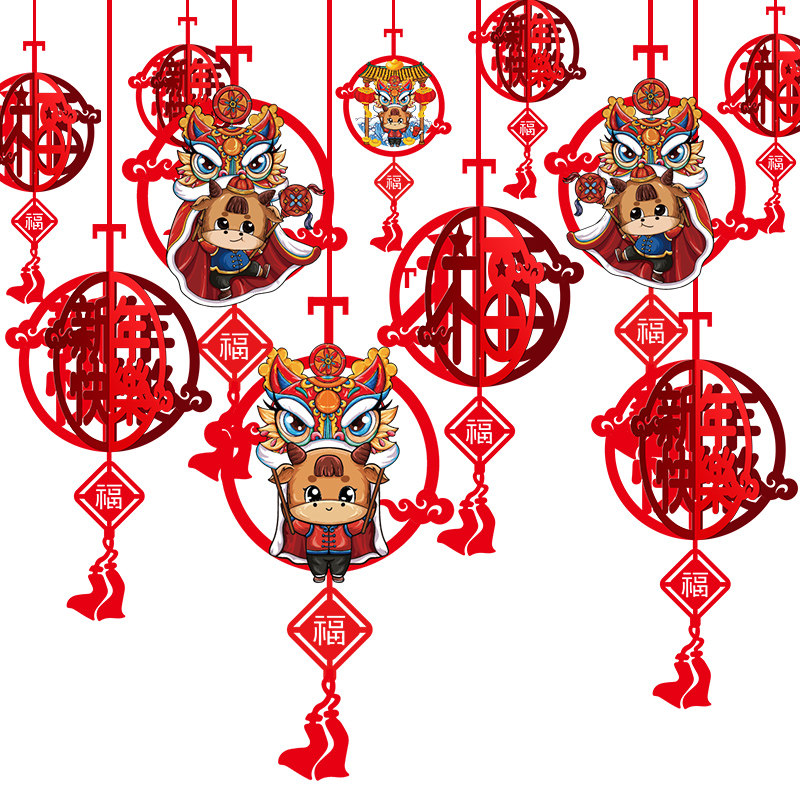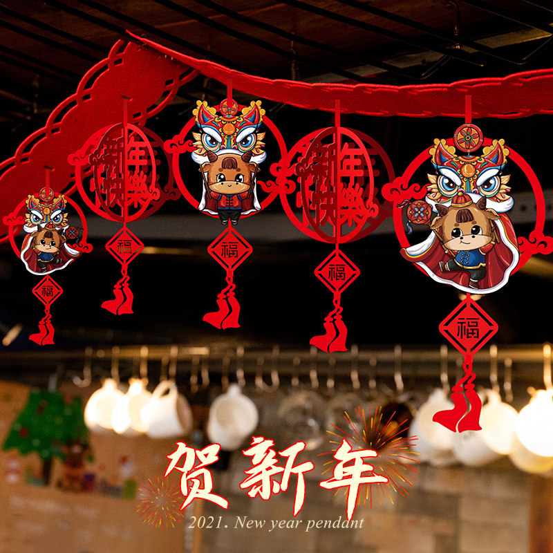2021 Год Быка Новогодние декоративные принадлежности Подвески Классная комната Детский сад Макет сцены Весенний фестиваль Латте Арт Маленькие украшения