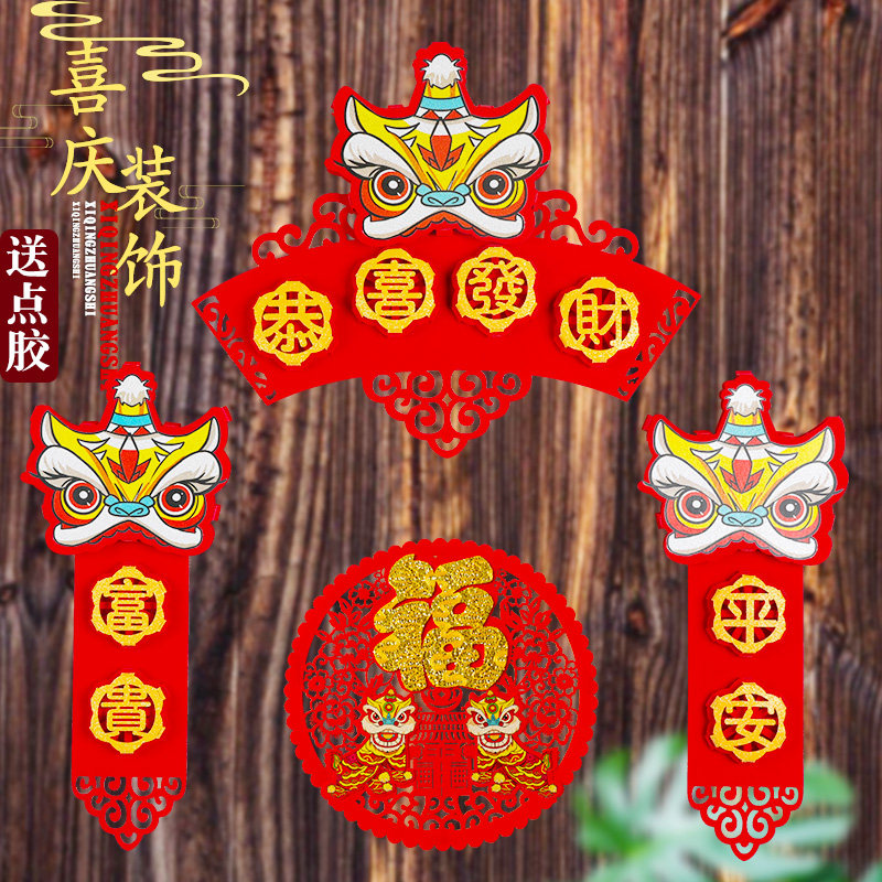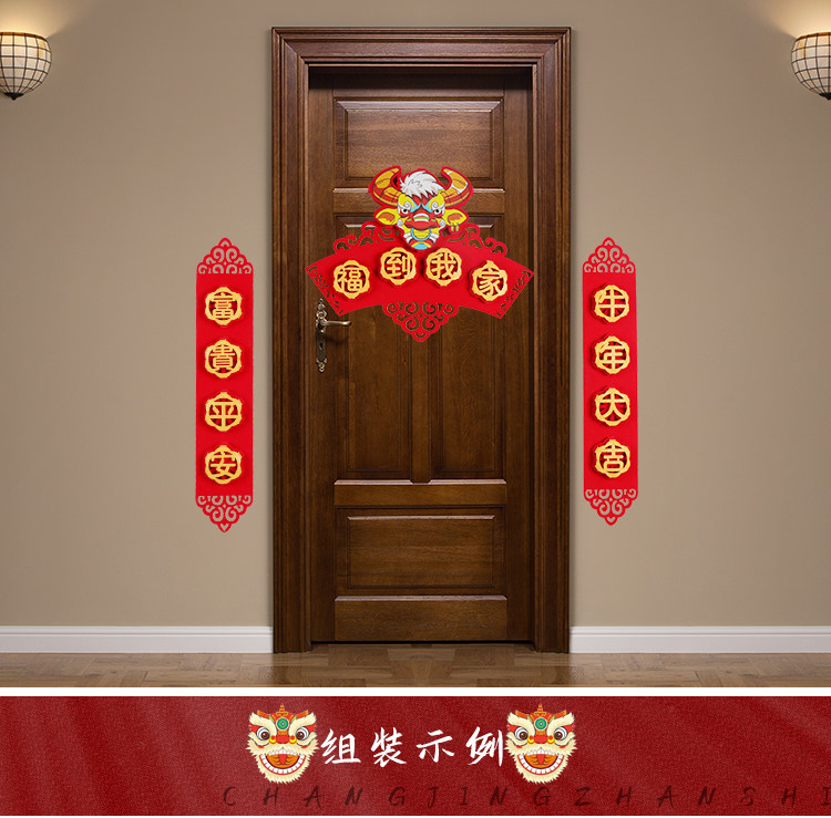 2021 Niu Niu Nian Lion Couplet Новый год Фортуна Дверь украшение весеннее фестиваль Весенний фестиваль федерации городских домохозяйств подвеска для торговых центров