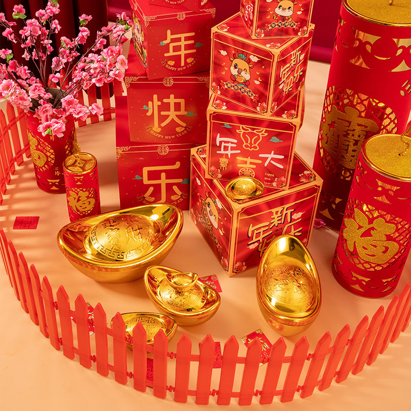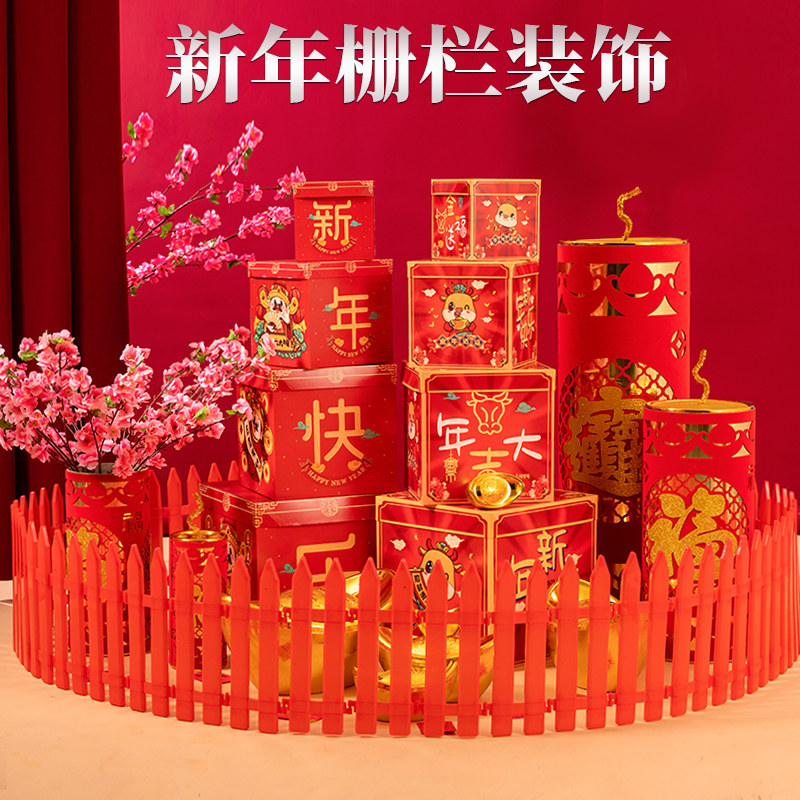 2021 Год Быка Новогоднее украшение Новогодняя планировка большой сцены Забор Маленькое украшение Макет сцены весеннего фестиваля