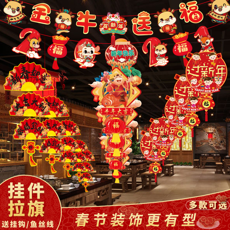 Новый год весенний фестиваль сцены закладывания поставки 2021 Niu Nian Pull Flag Banner Banner Flag, магазин магазин