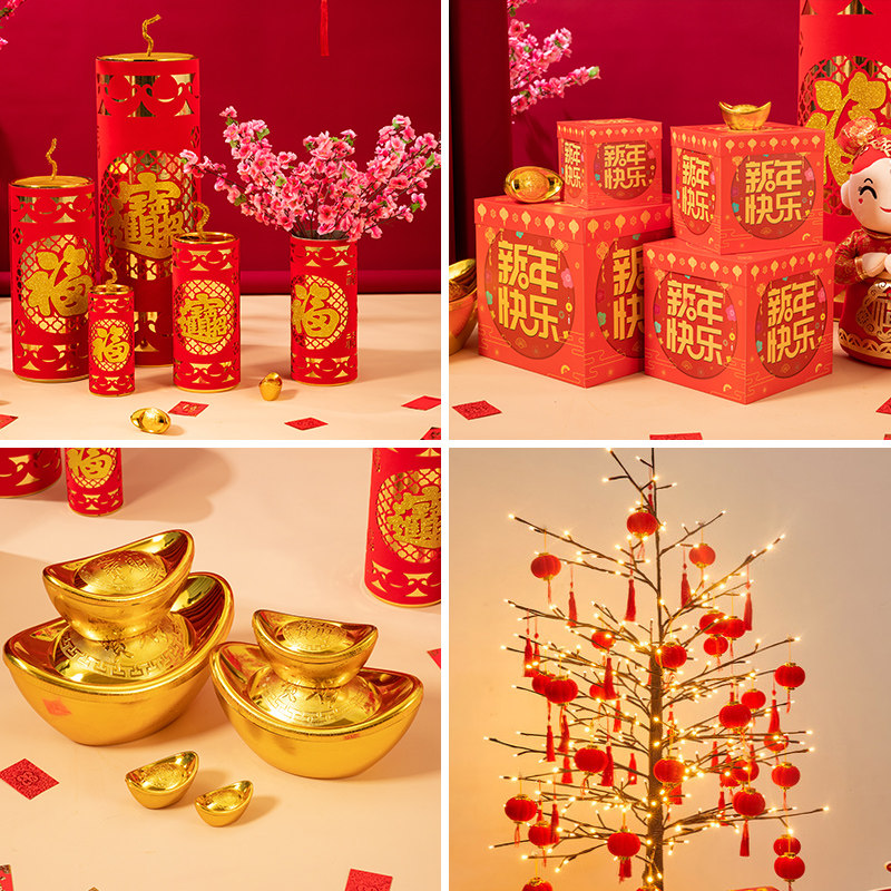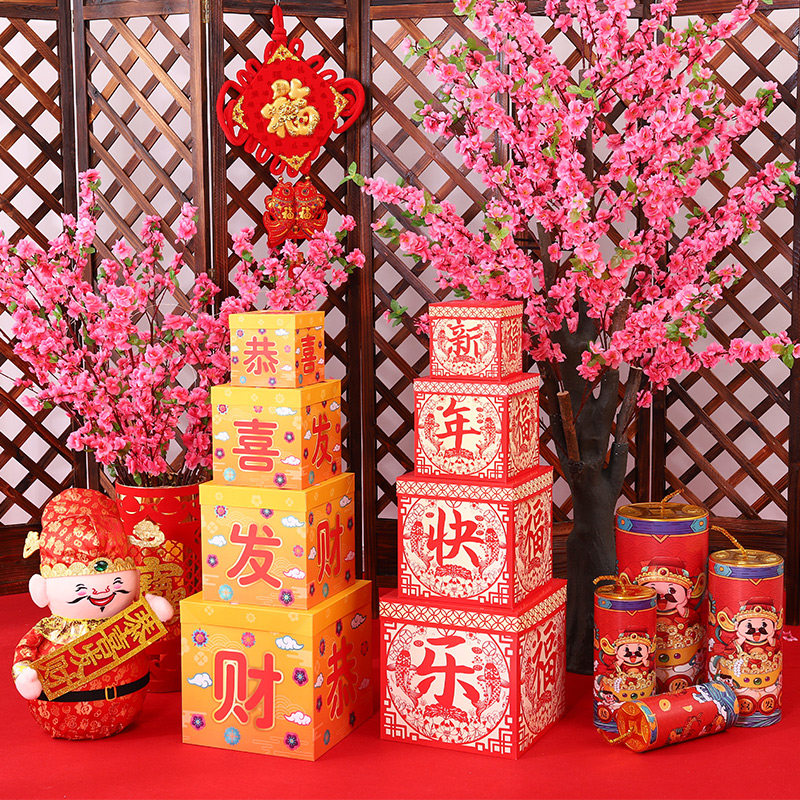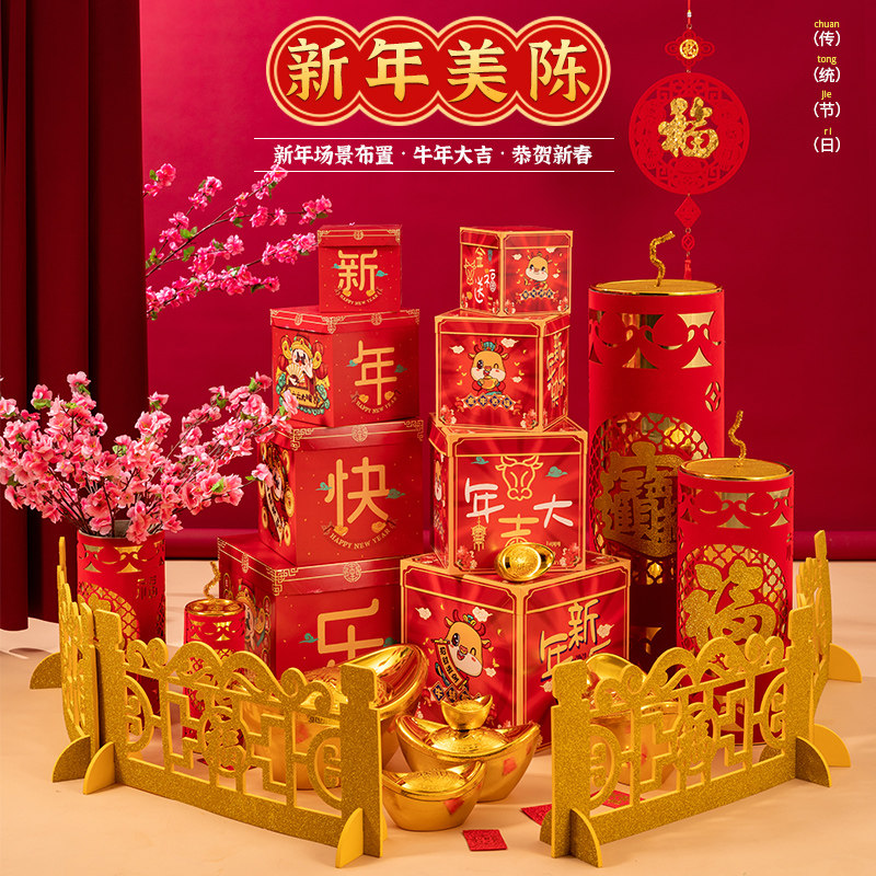 2021 Год Быка Новогоднее украшение макета сцены Duotou Украшение елки Большая подарочная коробка Орнамент Торговый центр Весенний фестиваль Дисплей