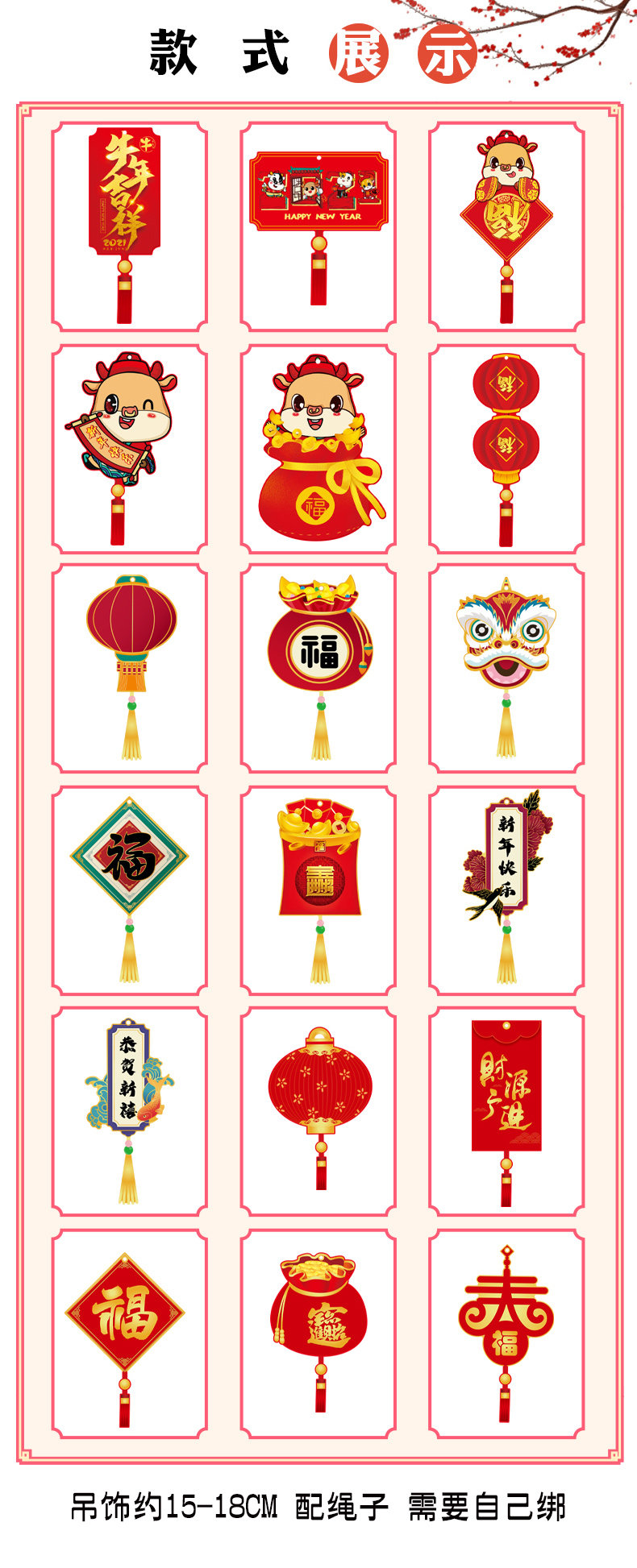 2021 Новый год новогодний новогодний украшение небольшого висящего декоративного благословения, подвесная крытая весенняя фестивальная сцена
