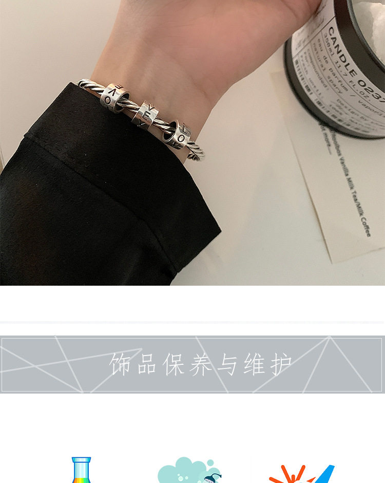 Ретро женский браслет с буквами, браслет с одной бусиной с косичкой, универсальный аксессуар, в корейском стиле, серебро 925 пробы