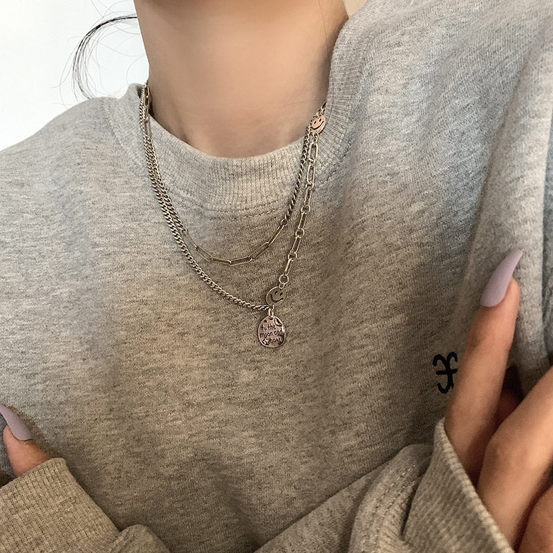 Подвеска, ретро ожерелье, цепочка до ключиц с буквами для школьников, свитер в стиле хип-хоп, в корейском стиле, серебро 925 пробы