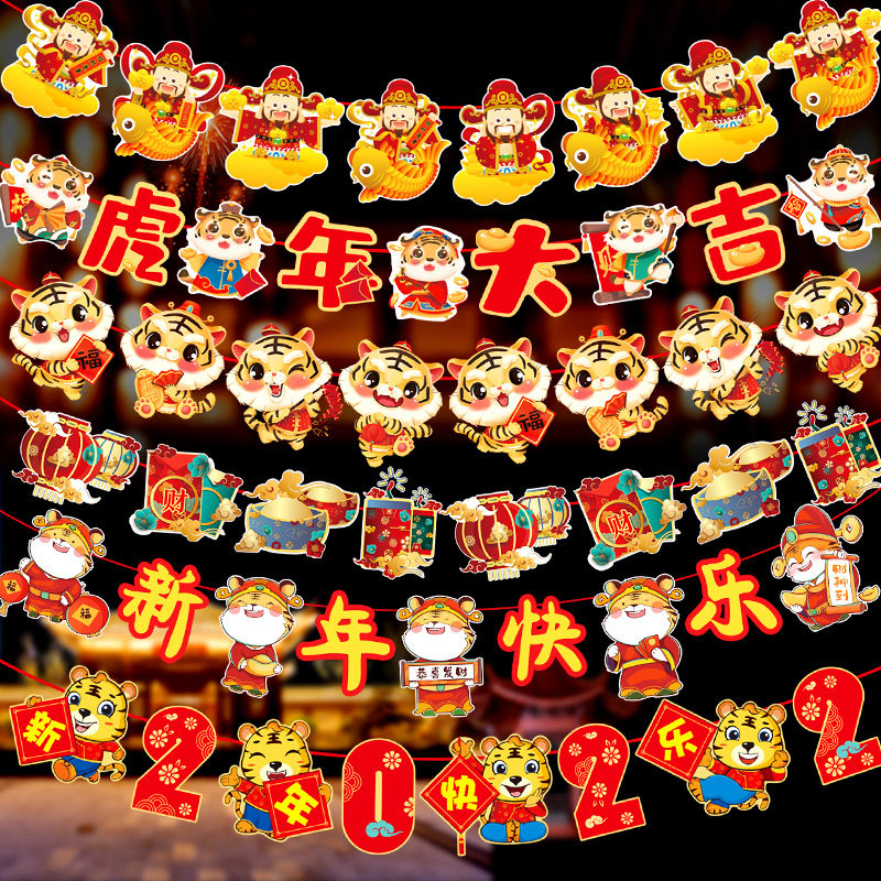 Новогодние украшения 2022, подвески, макет сцены, украшения Праздника Весны, маленькие подвески, наклейки года Тигра, выдвижные флажки
