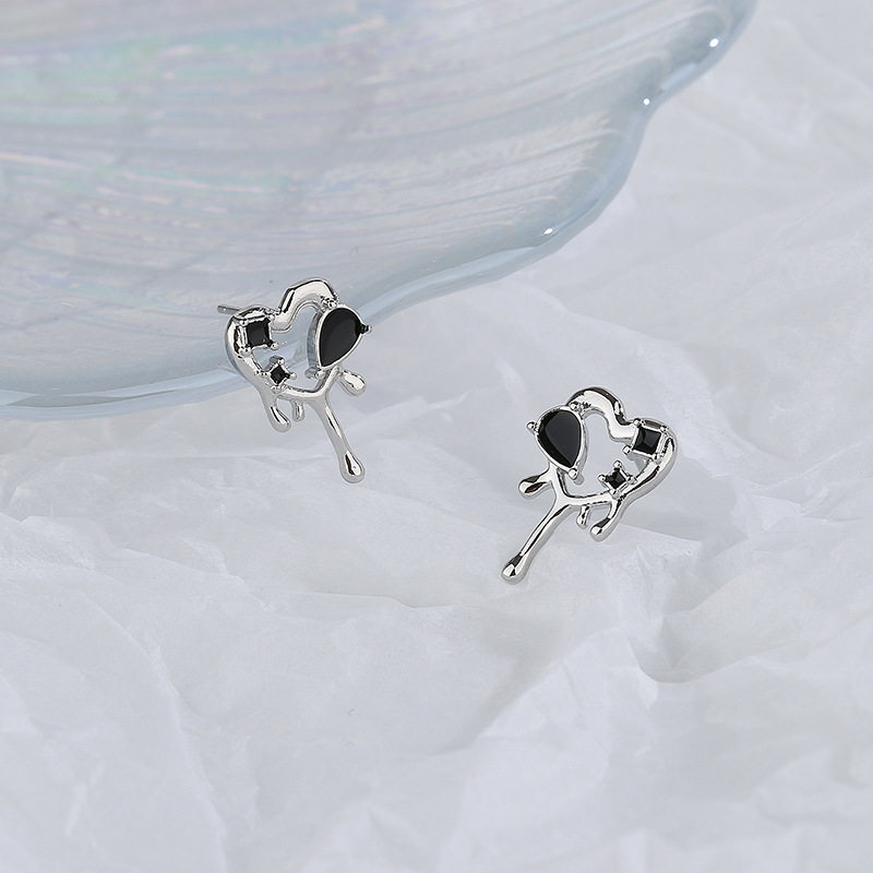 Серьги, черный красный (черный) чай с цирконом в форме сердца