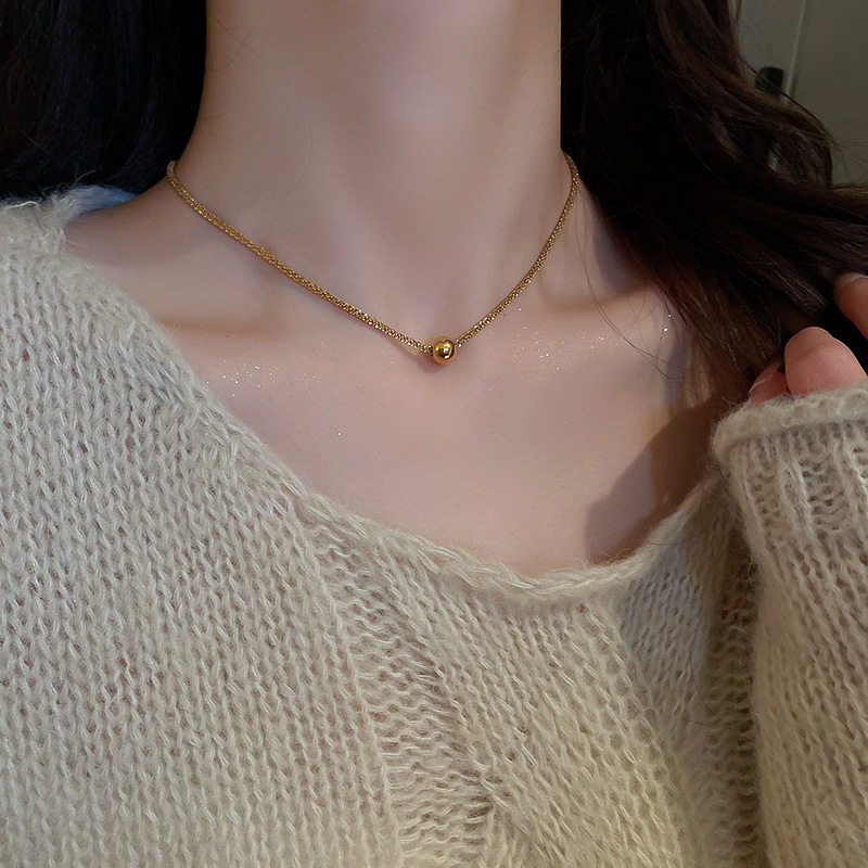 Небольшое дизайнерское украшение-шарик из нержавеющей стали, модное ожерелье, универсальная цепочка до ключиц, тренд сезона, простой и элегантный дизайн, популярно в интернете