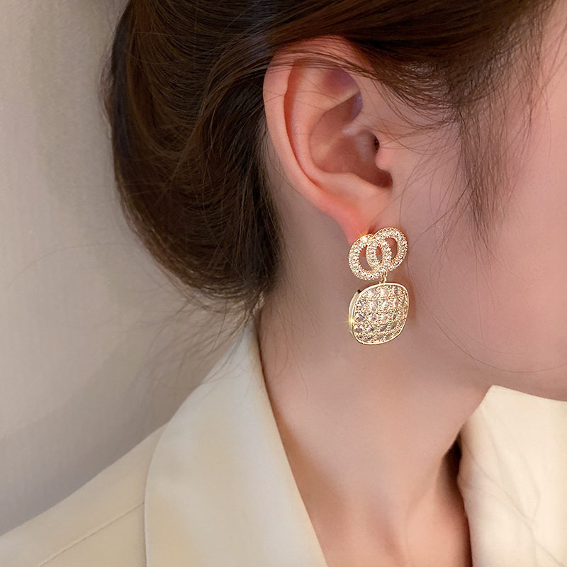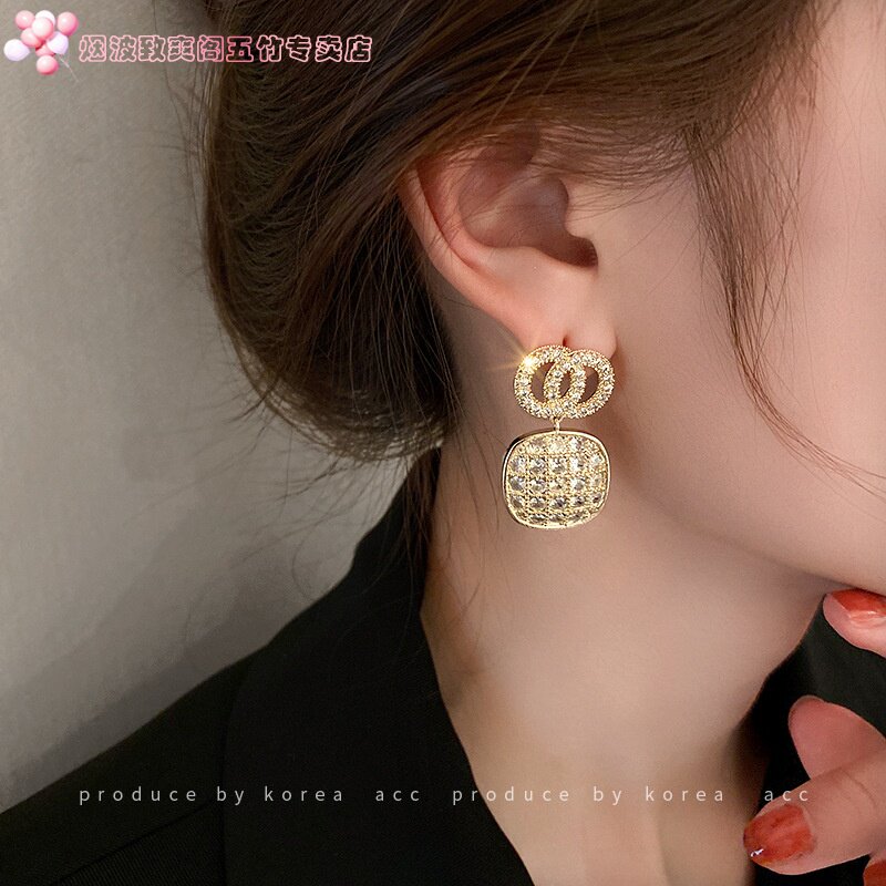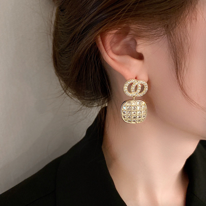 Серебряные геометричные брендовые дизайнерские модные металлические серьги с цирконом, тренд сезона