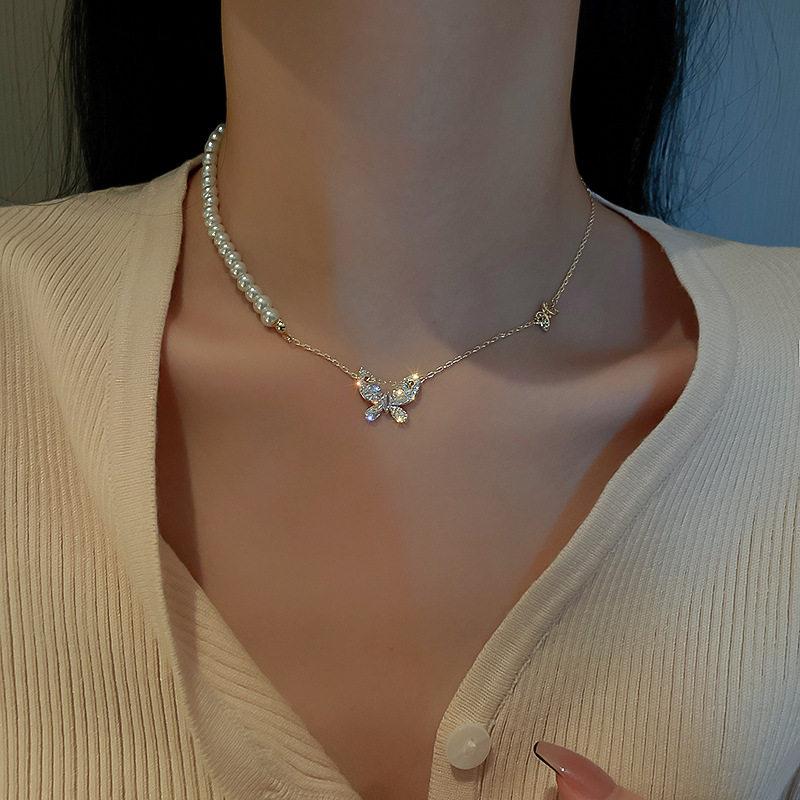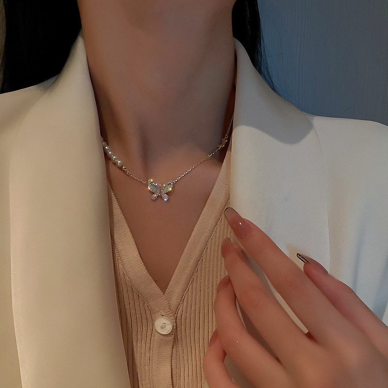 Модное ожерелье из жемчуга с цирконом, простой и элегантный дизайн, микроинкрустация, популярно в интернете