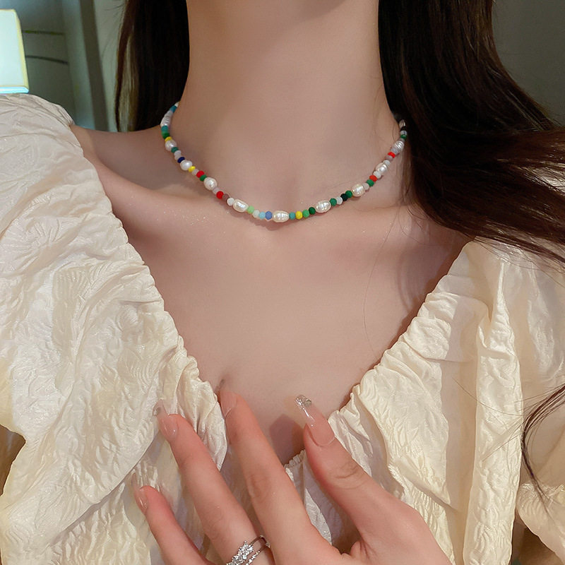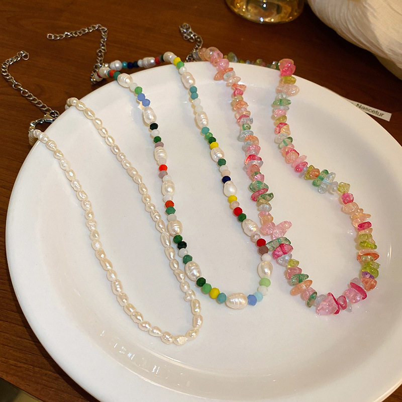 Ретро ожерелье из кварца из жемчуга, комплект, цепочка до ключиц, французский ретро стиль, 2 шт, стиль бохо