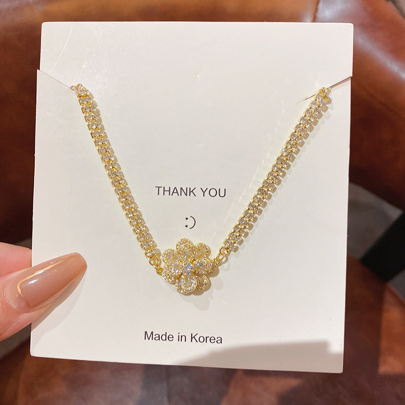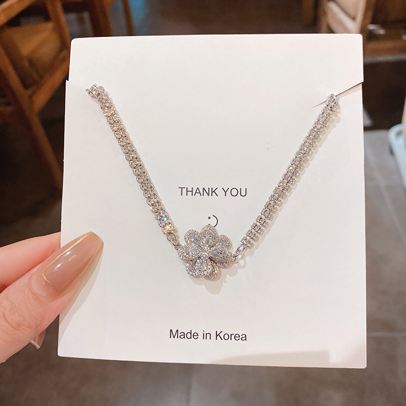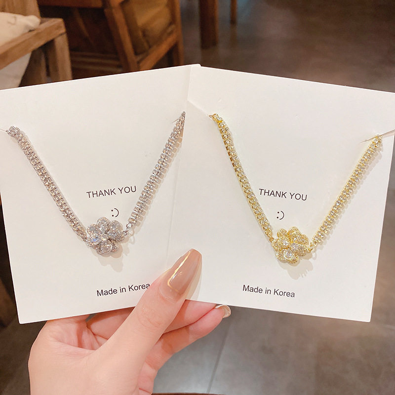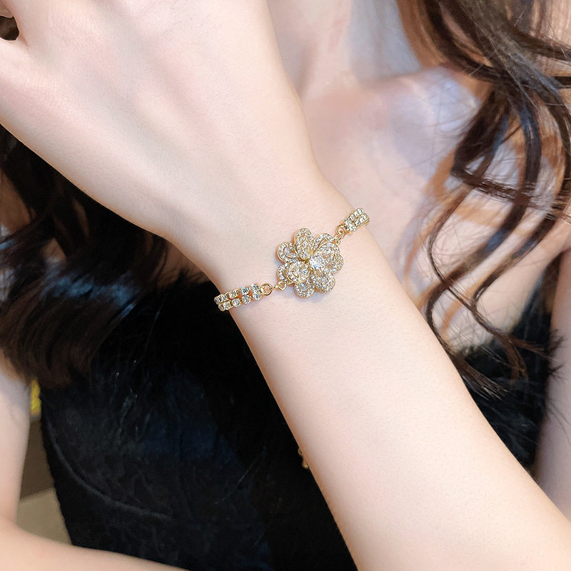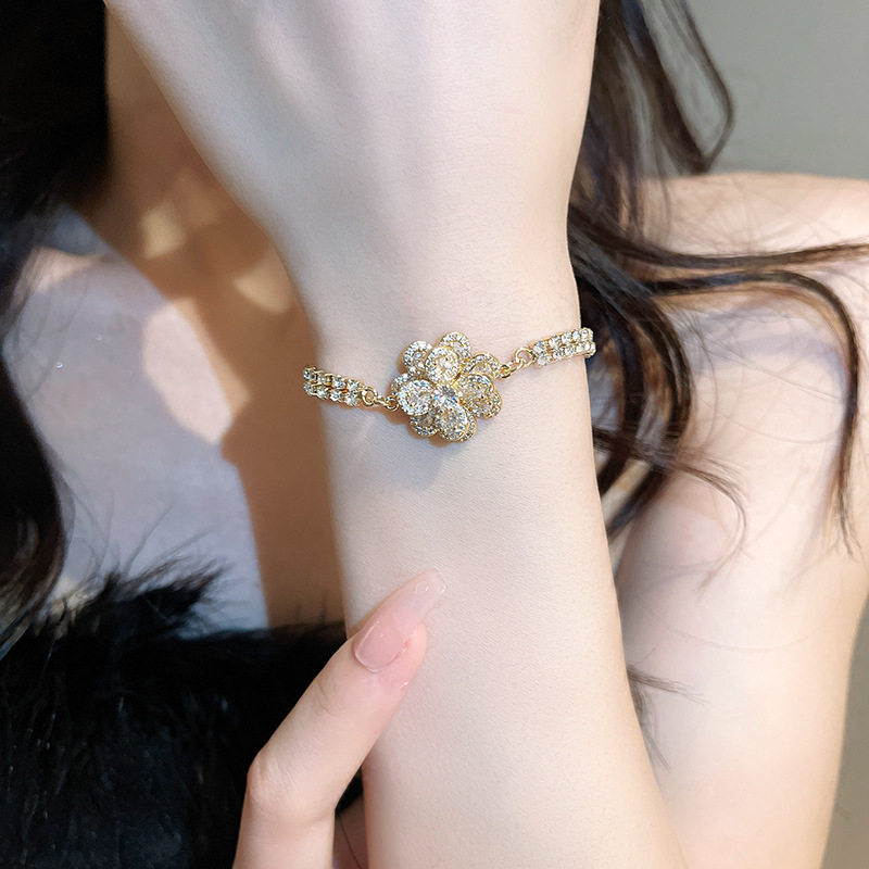 Ретро универсальный браслет с цирконом, свежее ювелирное украшение, в цветочек, в корейском стиле