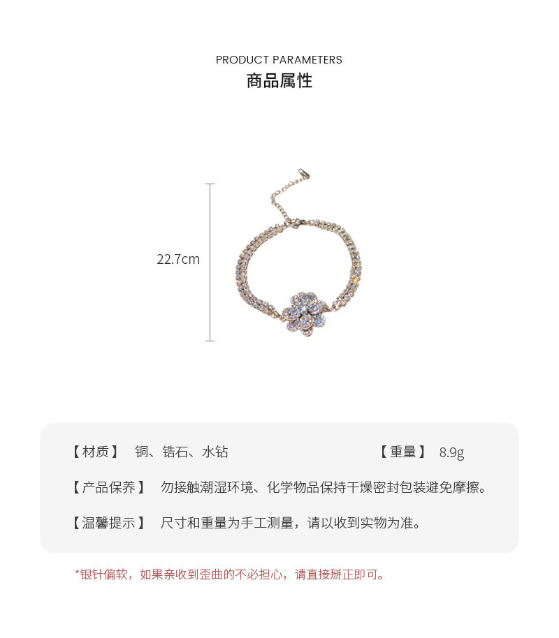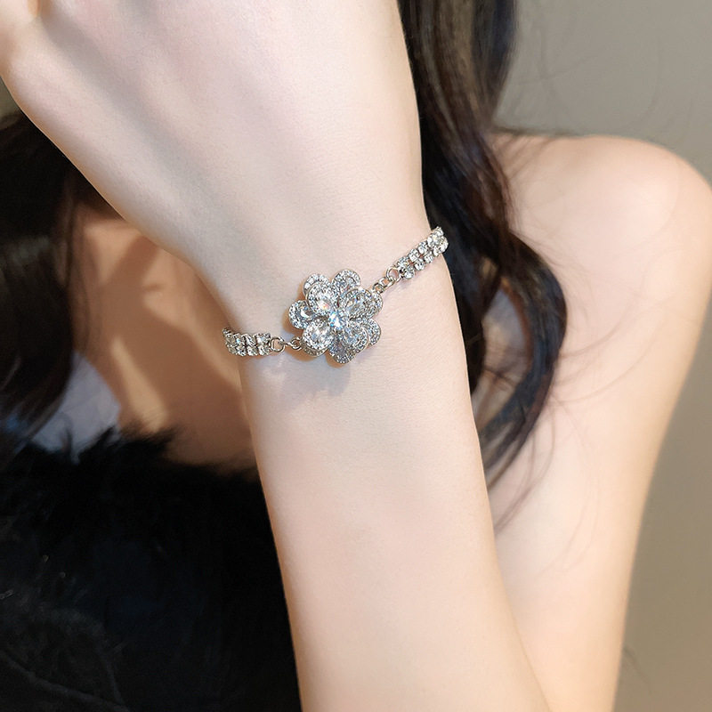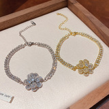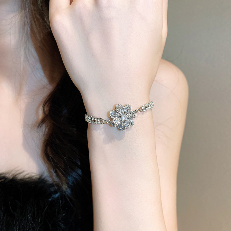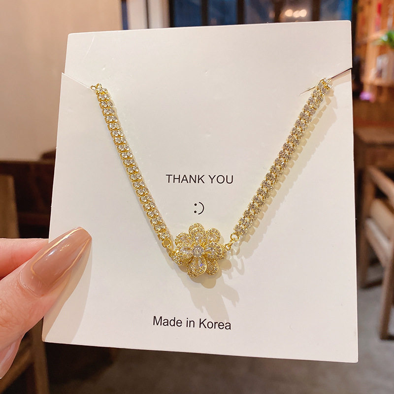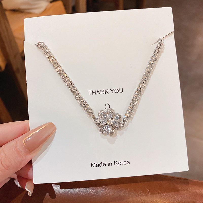 Ретро универсальный браслет с цирконом, свежее ювелирное украшение, в цветочек, в корейском стиле
