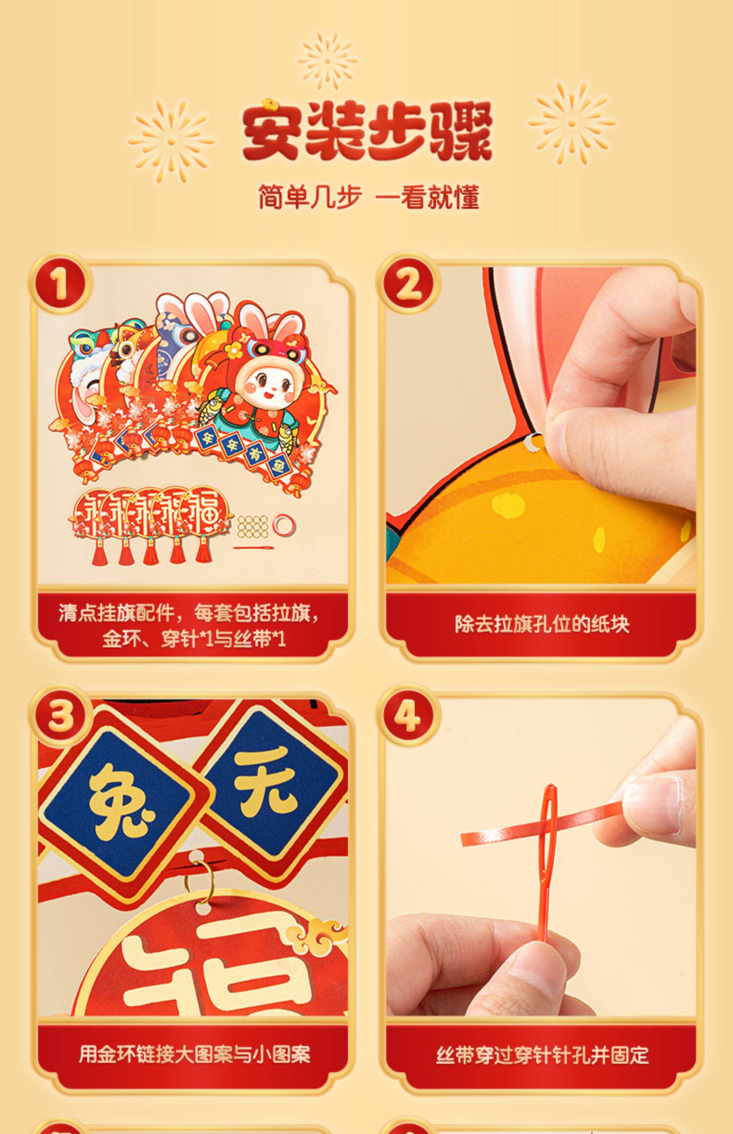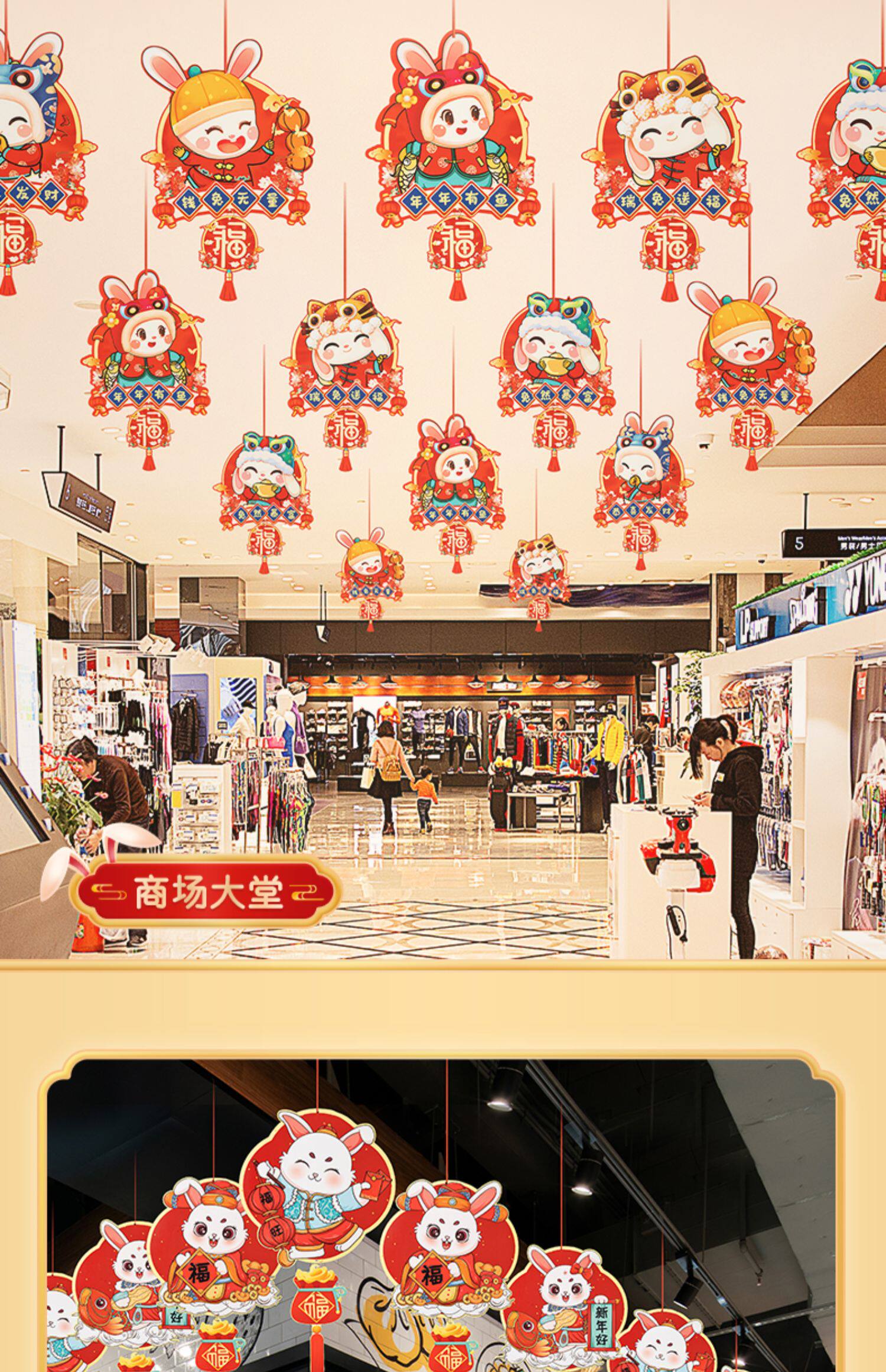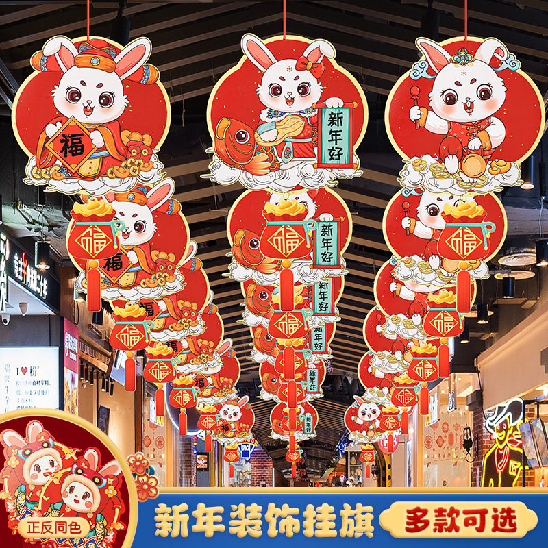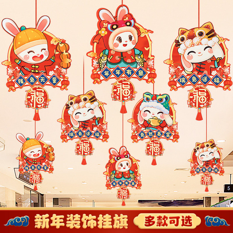 2023 Новый год кролика Год новогоднего декоративного припасы подвесной торговый центр висящий флаг.