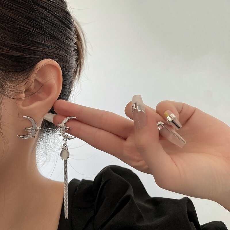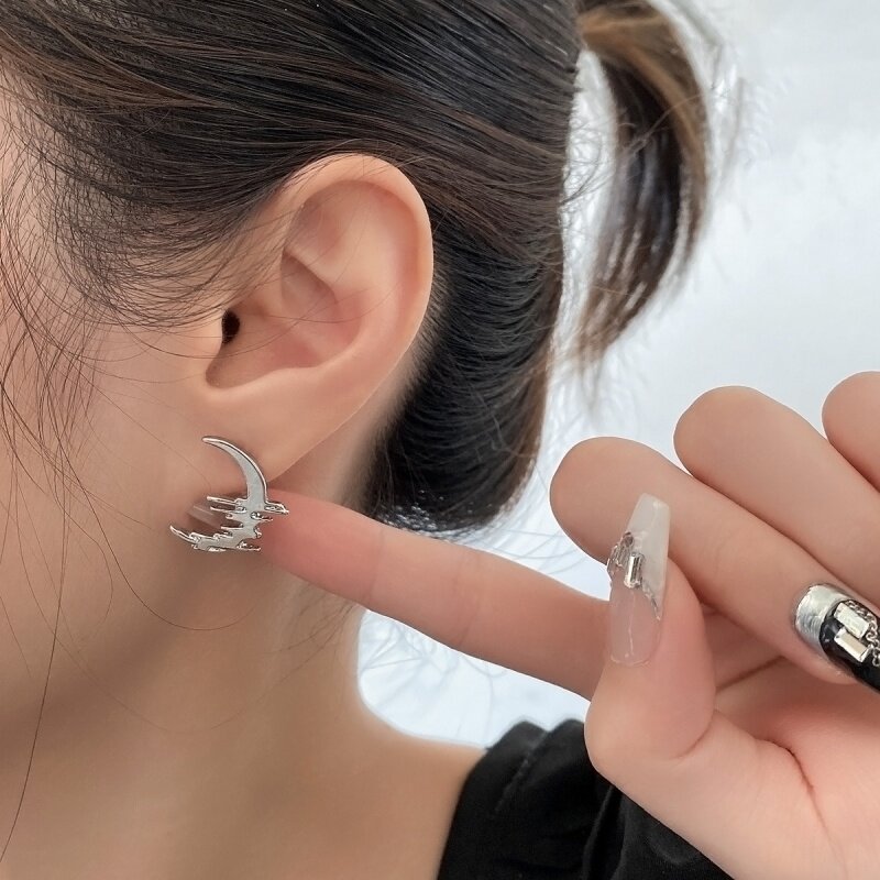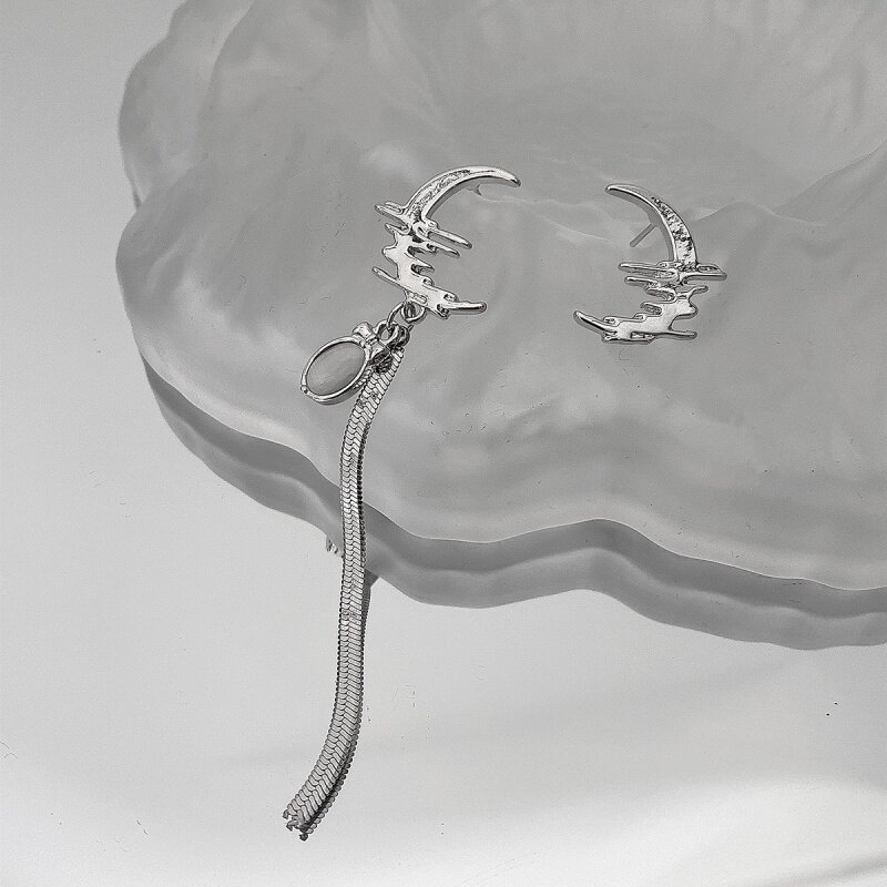 Srrmhyn Liquid Light Series Sweet и Cool Hot Girl Личная симметричная асимметричная полумесяца серебряного серебра.