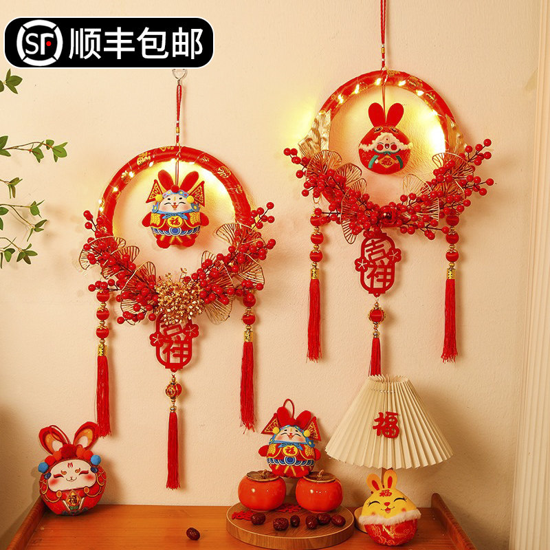 2024 Dragon Год Новогоднего Новогоднего Семейства FU ZI Living Room Pass у дверей подвесного цветочного кольца Подвешенное украшение для новогоднего посадки