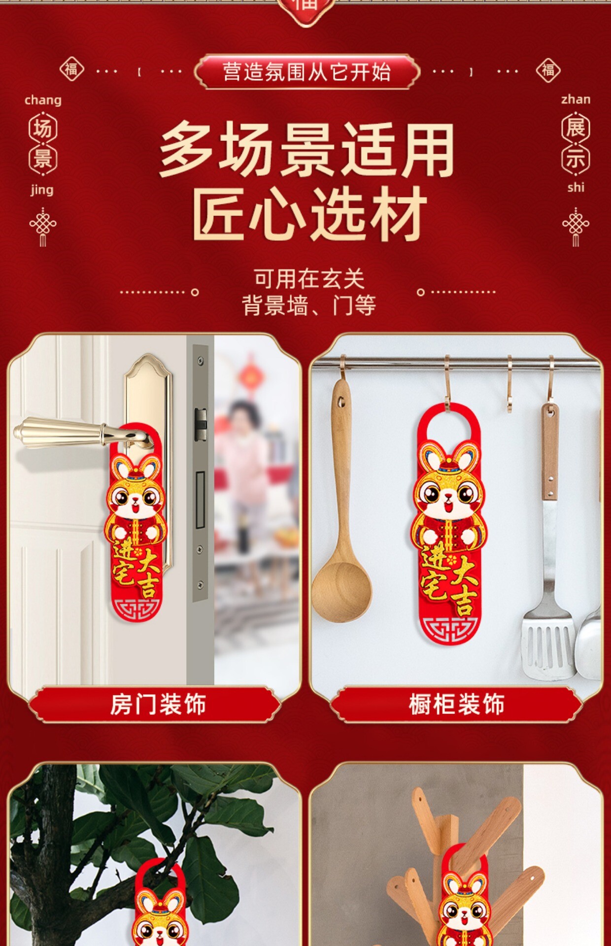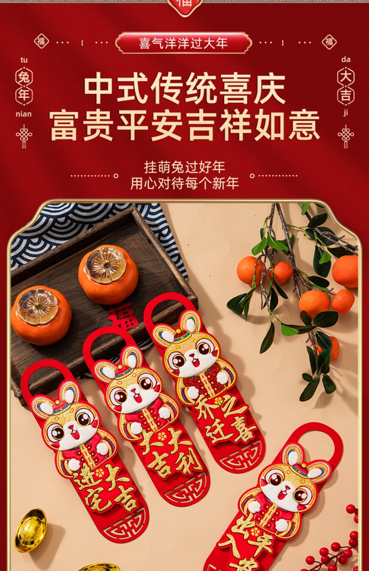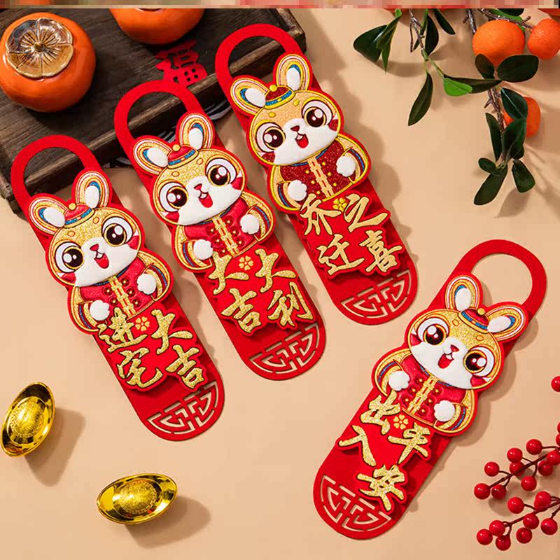 Входная дверь, чтобы переместить радость от дверной ручки весеннего фестиваля, украшения, украсить новый год, украсьте Новый год 2023 года кролика Год Нового года
