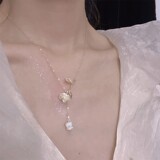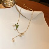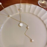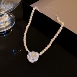 Корейское небольшое дизайнерское ожерелье с цирконом из жемчуга, брендовая цепочка до ключиц, в цветочек, тренд сезона