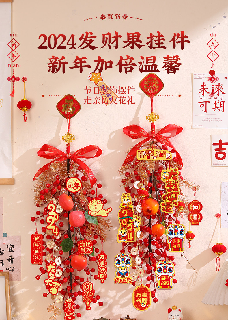 2024 Dragon Year Новый год богатые фруктовые шашлыки подвесной весенний фестиваль Новый год годовой гостиная подвесная декора