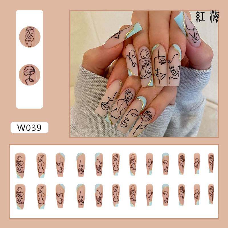 Накладные ногти, длинные наклейки для ногтей для маникюра, коллекция 2023, европейский стиль