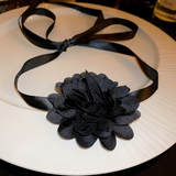 Черное ожерелье, цепочка до ключиц, чокер, аксессуар, в цветочек, легкий роскошный стиль, изысканный стиль