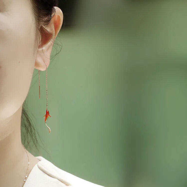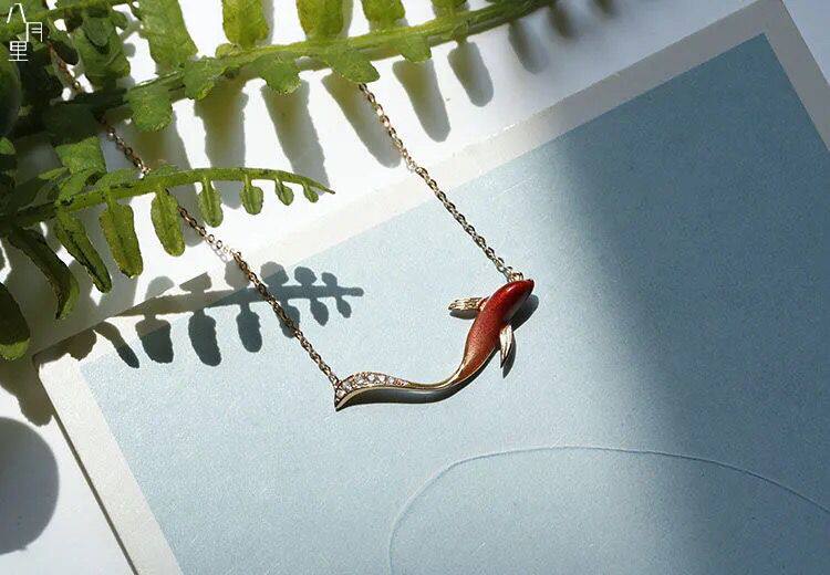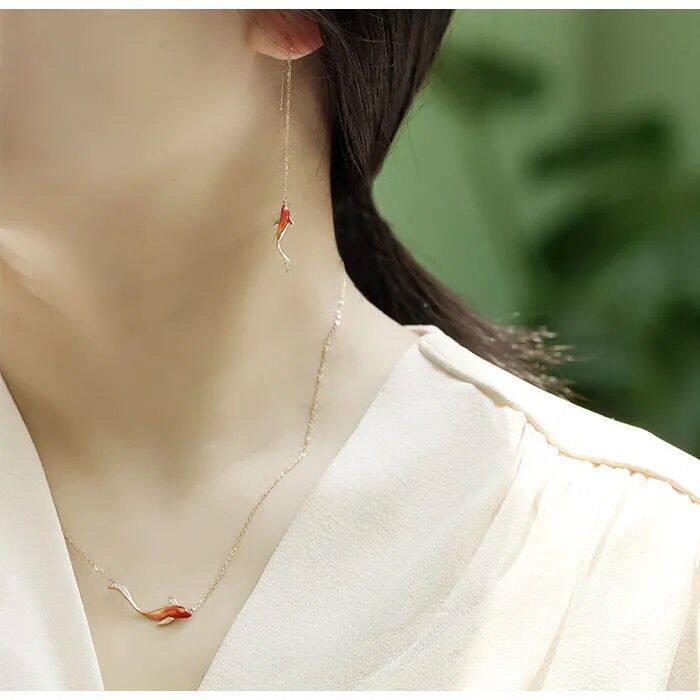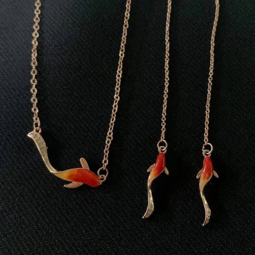 Серьги, подвеска, золотая эмаль, милое китайское ожерелье, серебро 925 пробы, розовое золото, китайский стиль