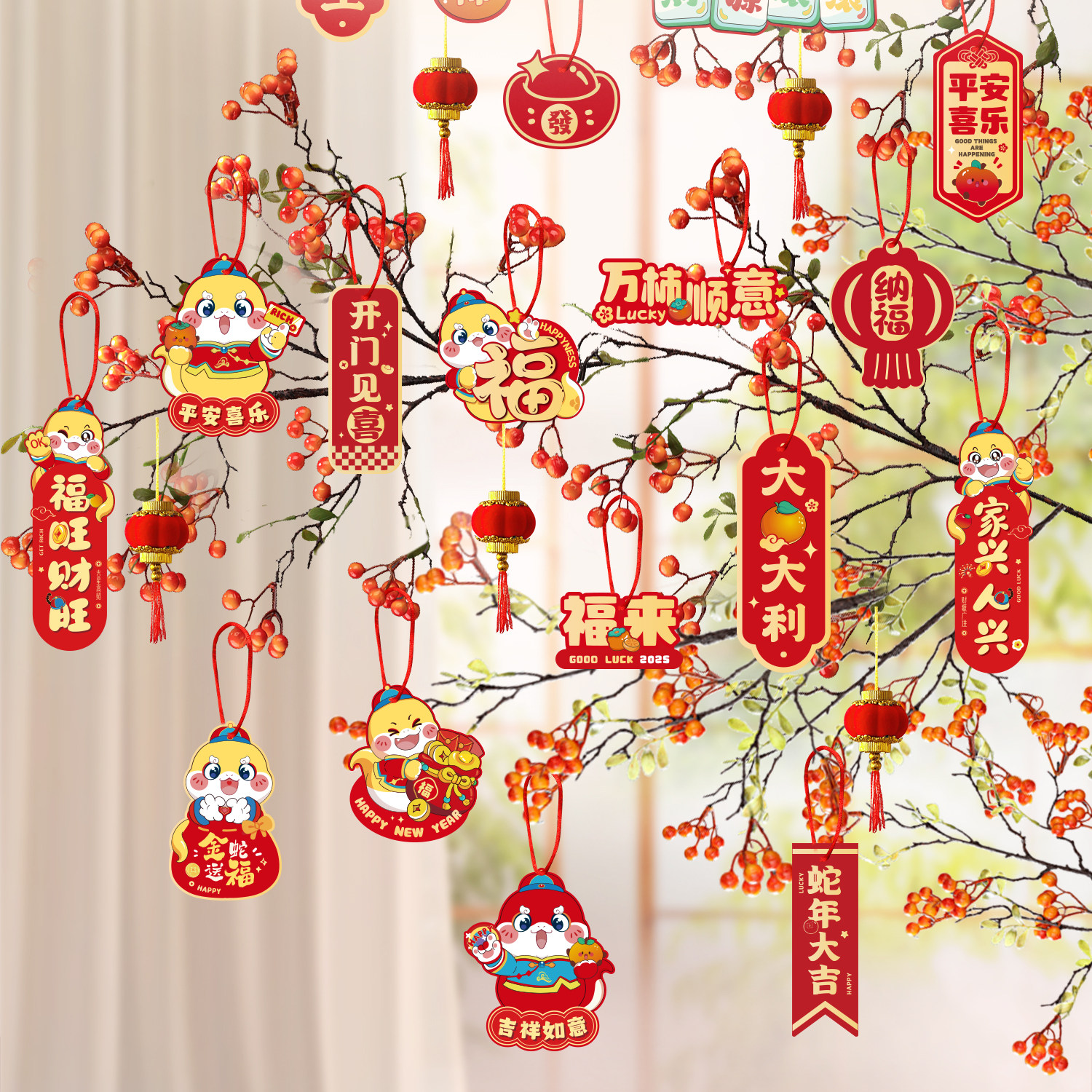 2025 Новый год в змеи Новый год весенний фестиваль маленькие висящие украшения небольшие фонари на дереве денег.