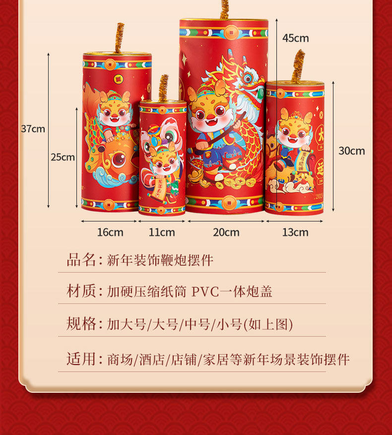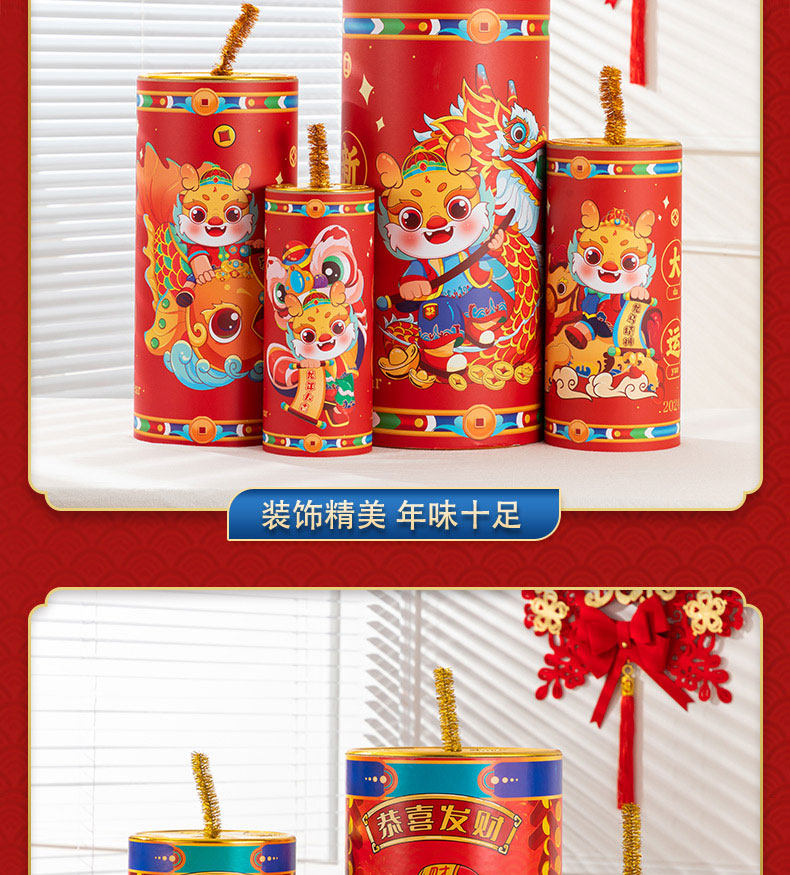 Новогодние декоративные пушечные украшения 2024 Dragon Firecrackers Mei Chendui Top Spring Новый год.