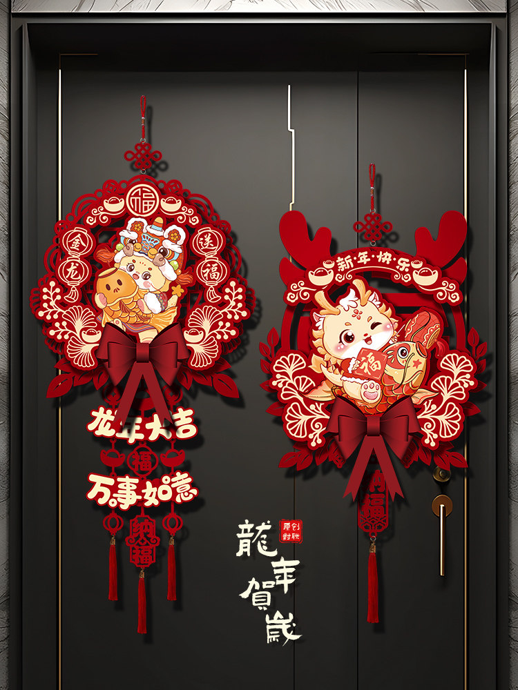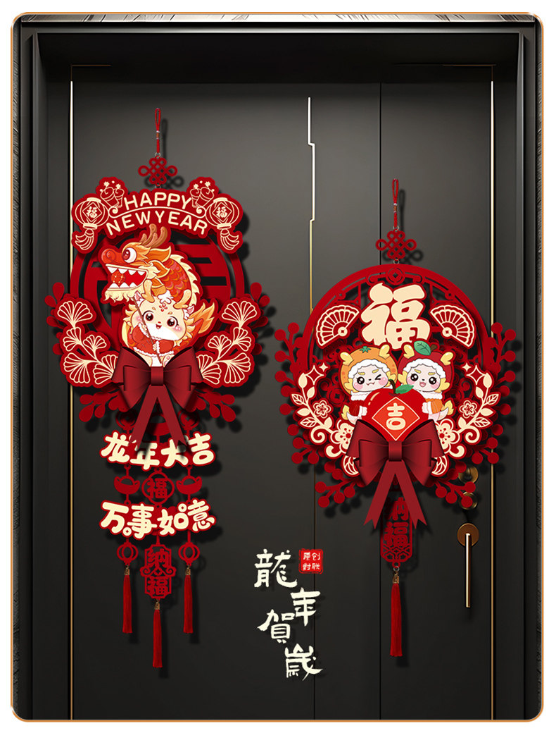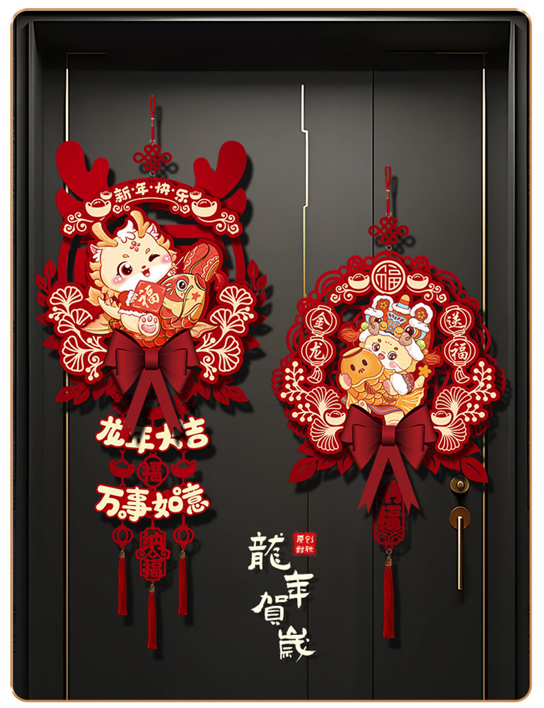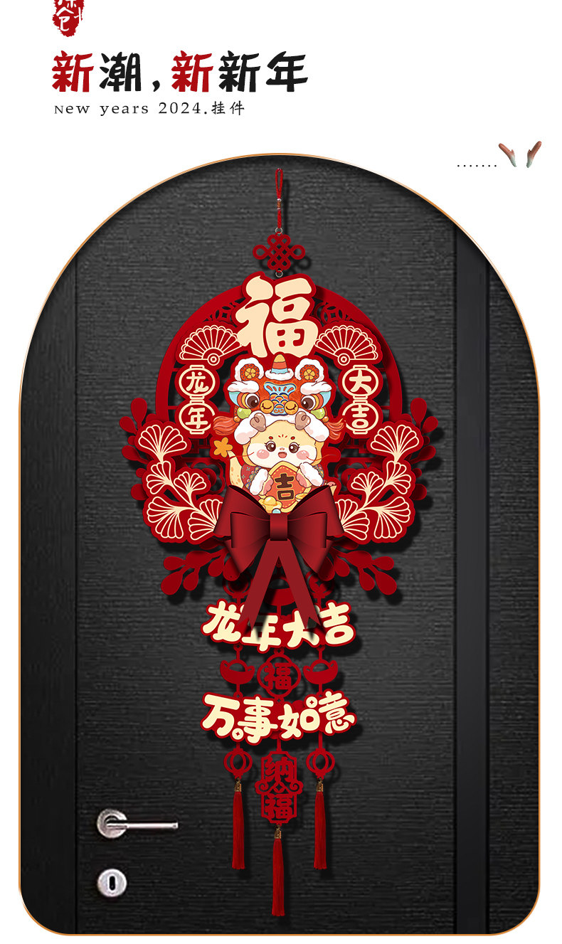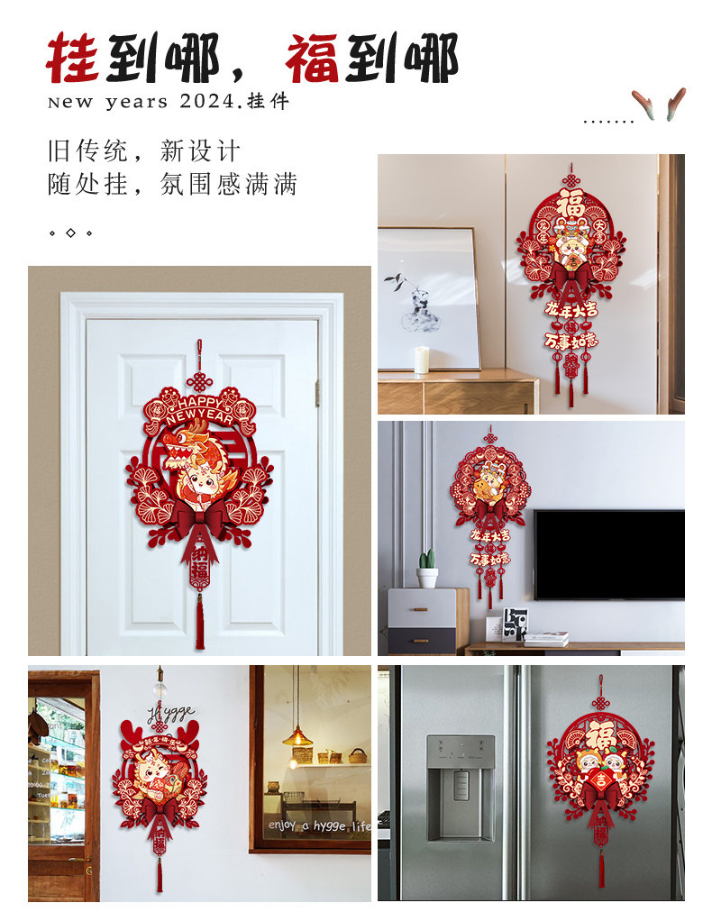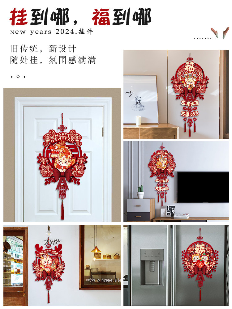 2024 Dragon Год Новогоднего годы, декоративная подвеска, домашняя гостиная, благословение, хранение украшения весеннее новогоднее сцена.