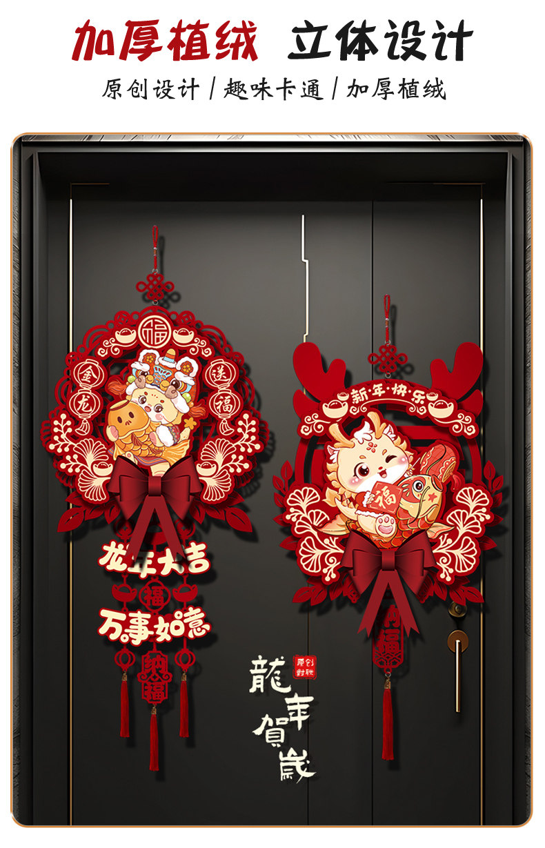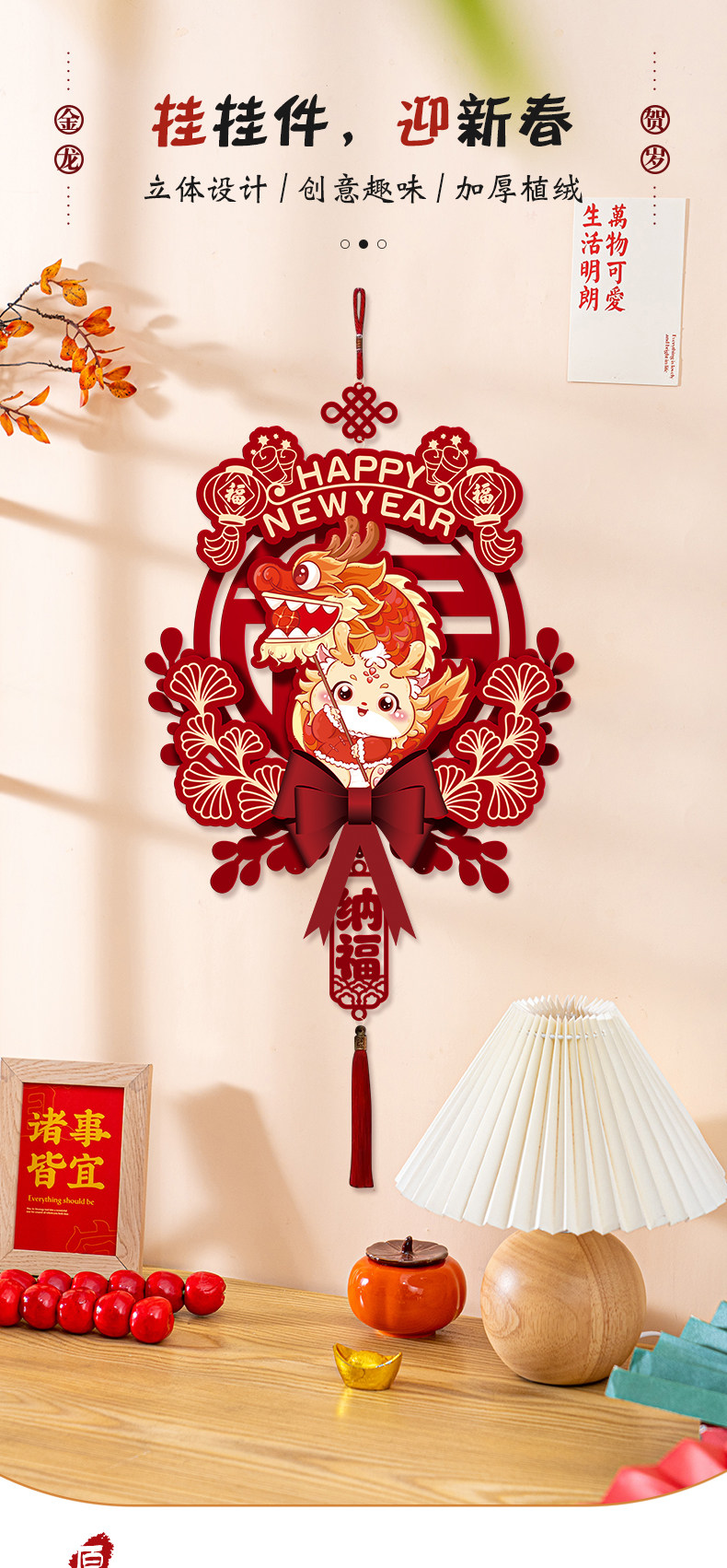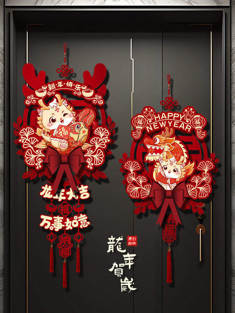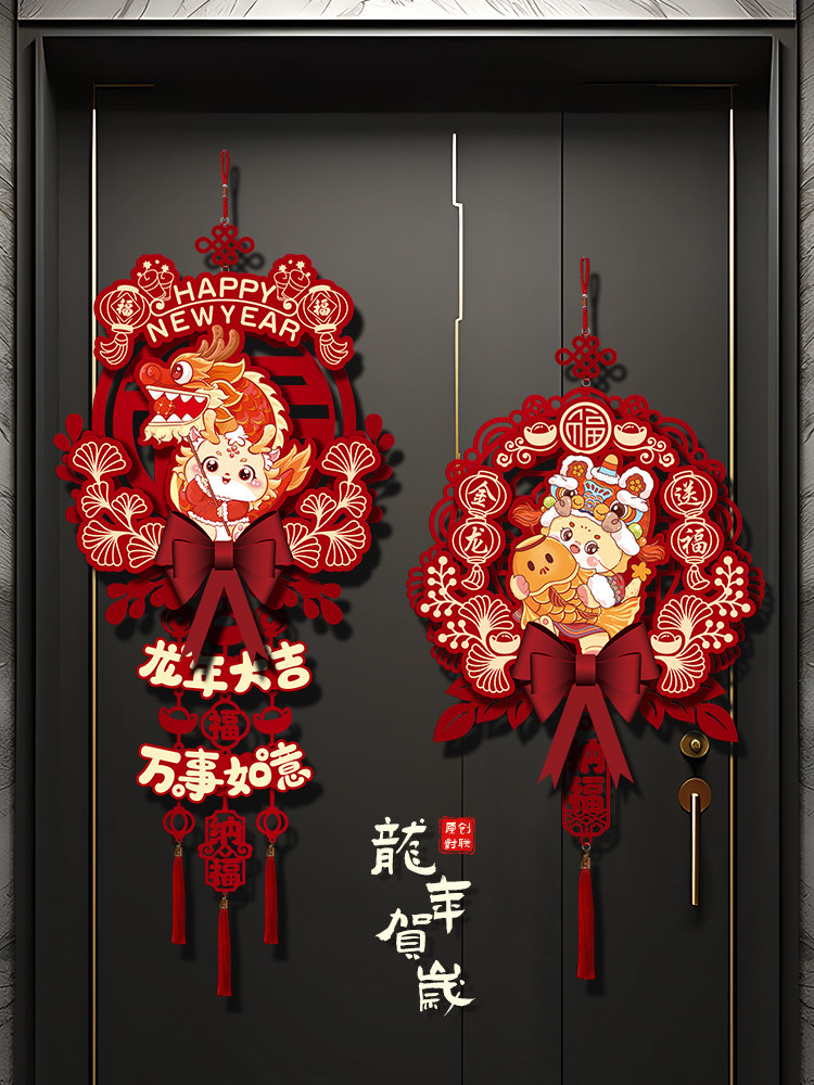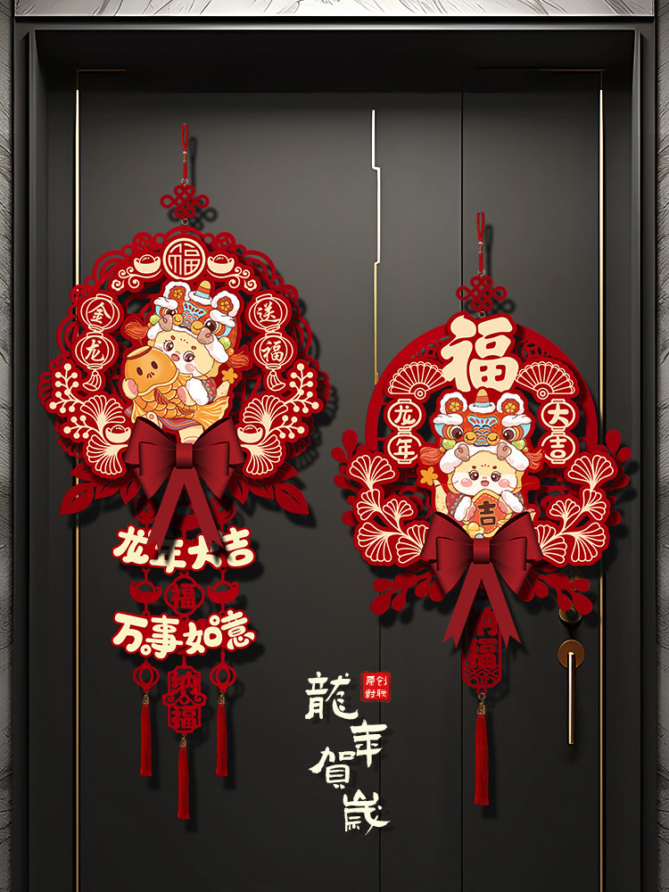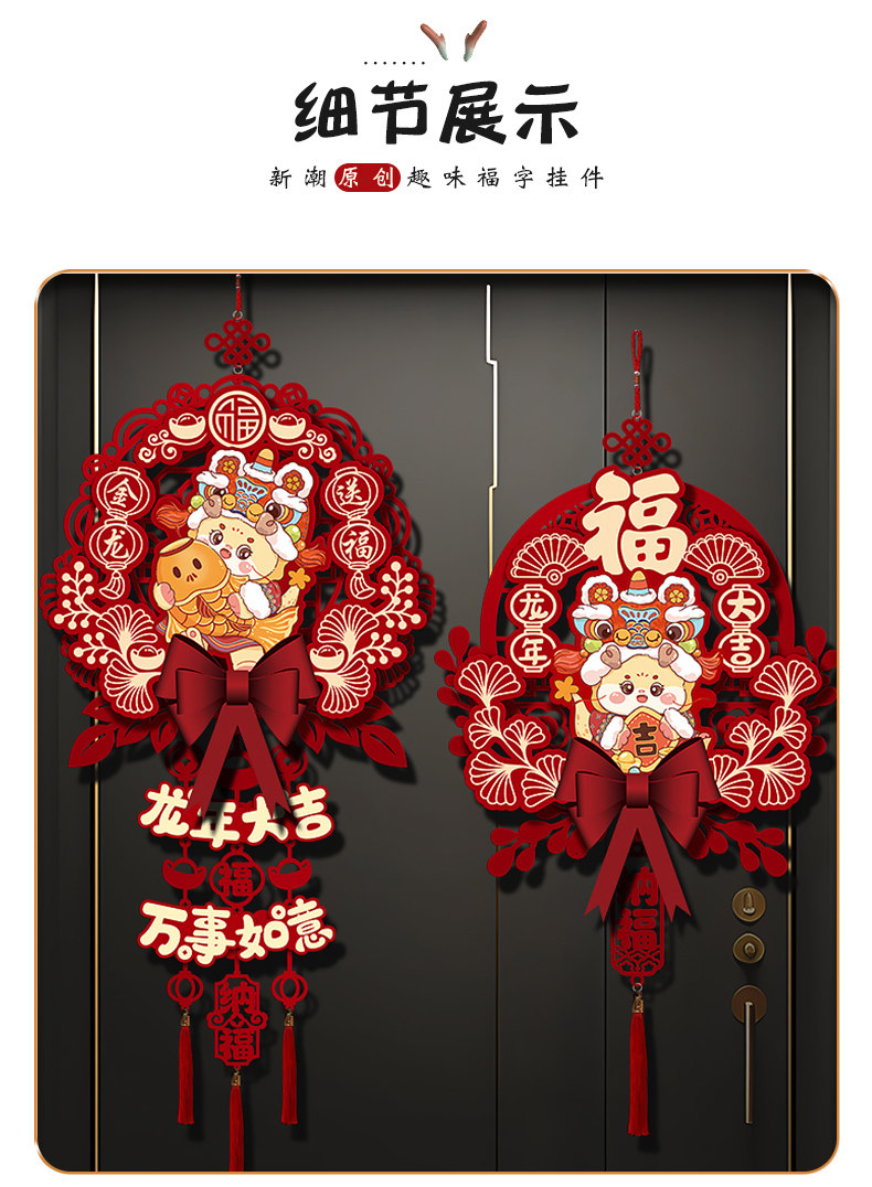 2024 Dragon Год Новогоднего годы, декоративная подвеска, домашняя гостиная, благословение, хранение украшения весеннее новогоднее сцена.