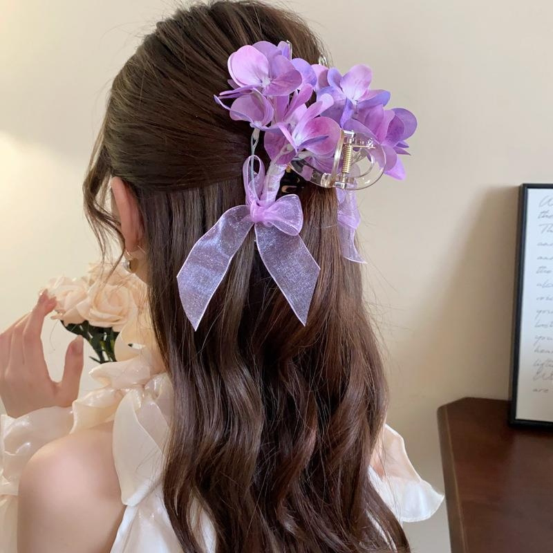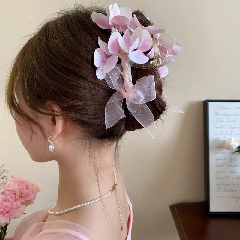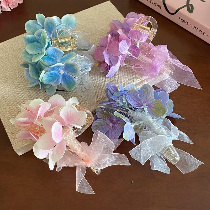 Милая заколка для волос с бантиком, атмосферная заколка-крабик, весенняя акула, в цветочек