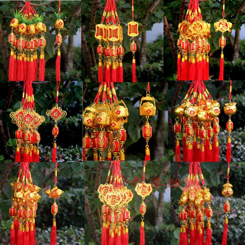 Новогодний фестиваль Праздничный кулон Знак персонажа Шелковая нить Зимняя дыня Красный фонарь Нитка Золотое ведро Ананас Новоселье Новогоднее украшение растения