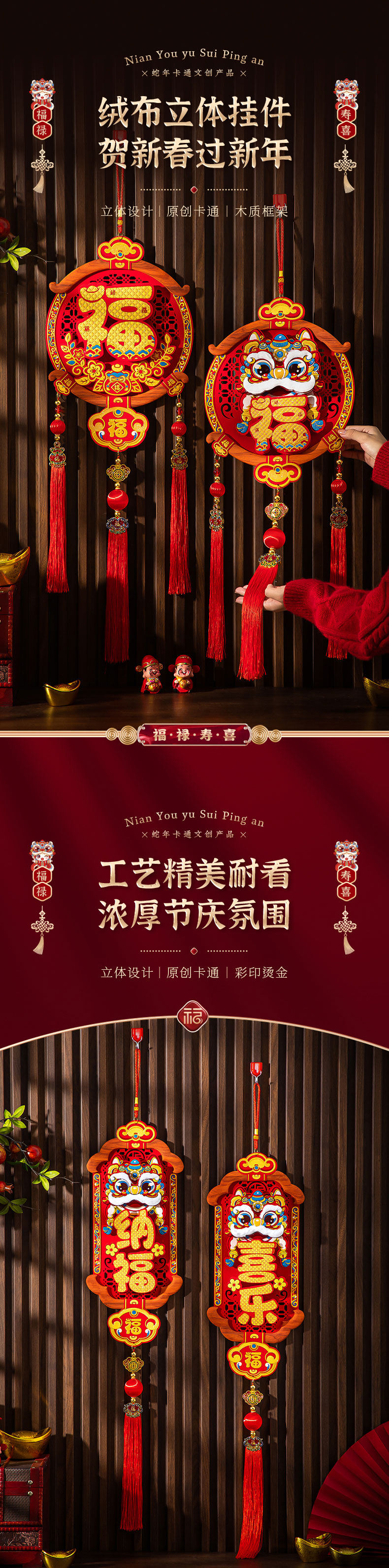 Новогодний кулон 2025 Год Змеи Новое крыльцо Фон Стена Дверь Подвесное украшение Новогодний весенний фестиваль Благословение Наклейка Украшение Композиция