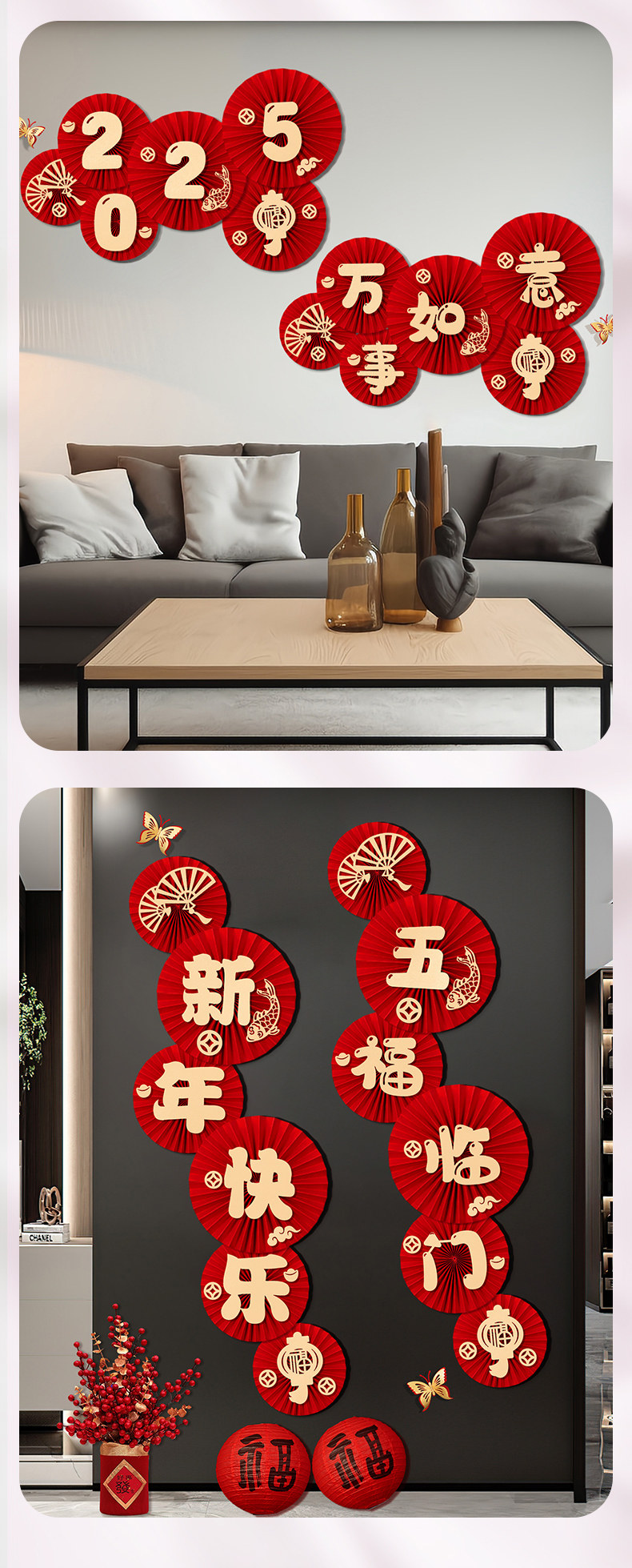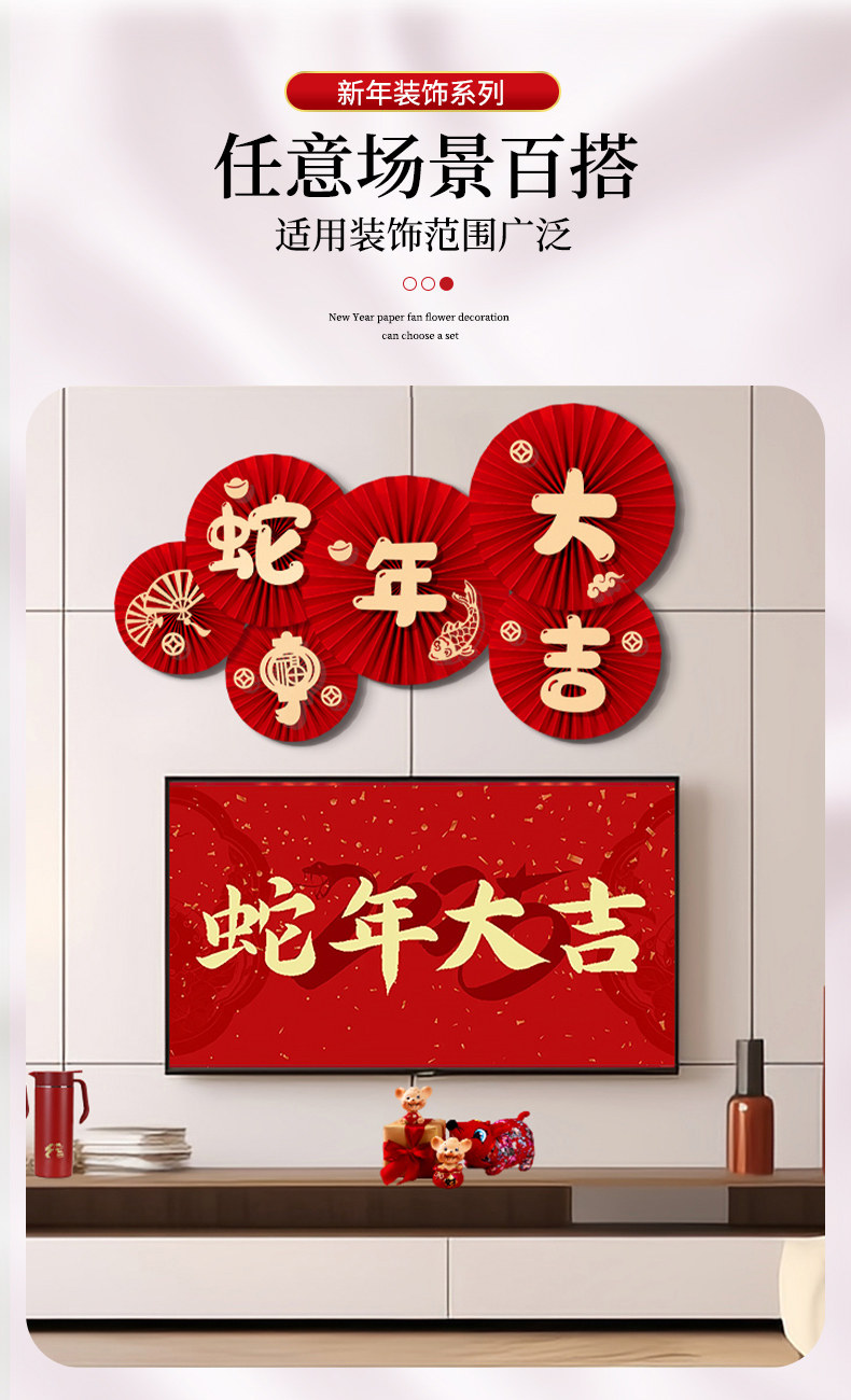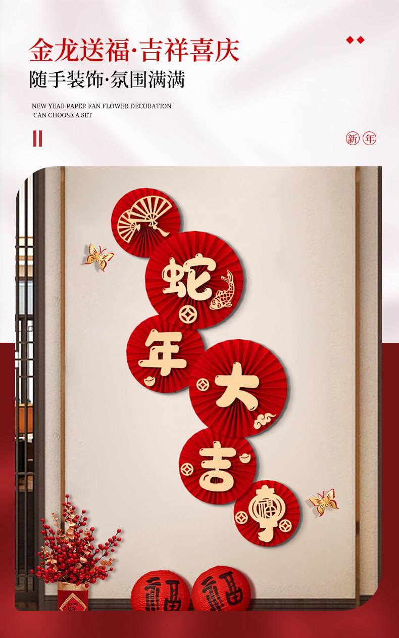 2025 Год Змеи Новый Весенний Фестиваль Гостиная Крытый Фон Макет Стены Бумага Веер Цветок Новогодние Наклейки На Стены Новогодние Декоративные Принадлежности
