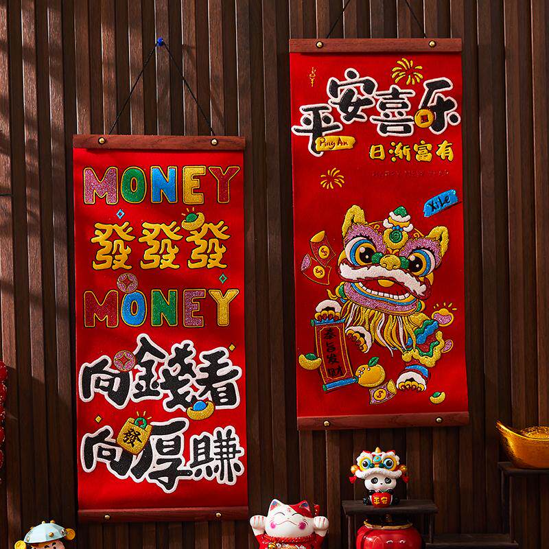 Новогоднее украшение-подвеска с волнами весны, национальная тенденция, подвесной куплет интернет-знаменитостей, Бог богатства, подвесная картина из бархата красного дерева, переход к новому украшению дома, подвесное украшение